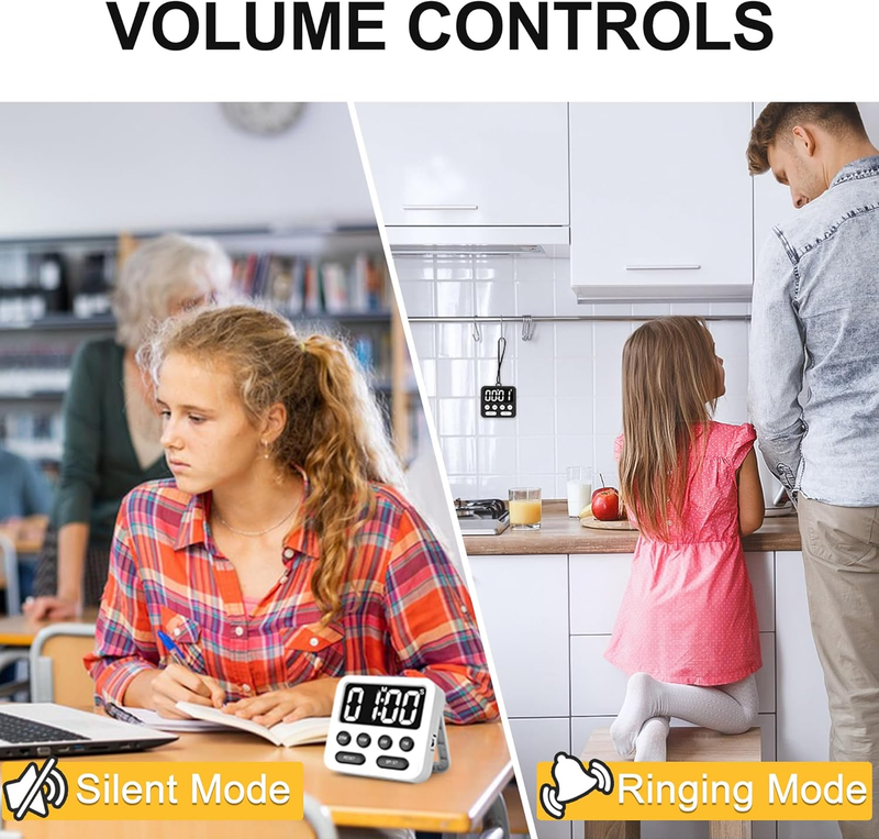 Adjustable Volume: This classroom timer for kids has two volume modes. In ringing mode, the tone is clear and loud; In mute mode, the timer will remind you by flashing, which can reduce distractions and keep you focused.