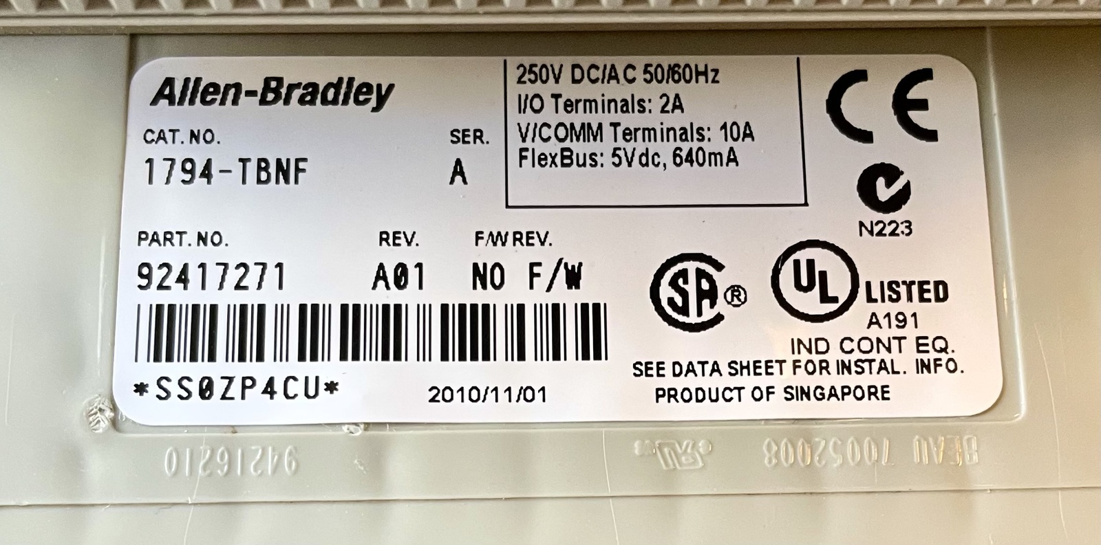 Allen Bradley 1794-TBNF Ser A Flex I/O Fused and similar items