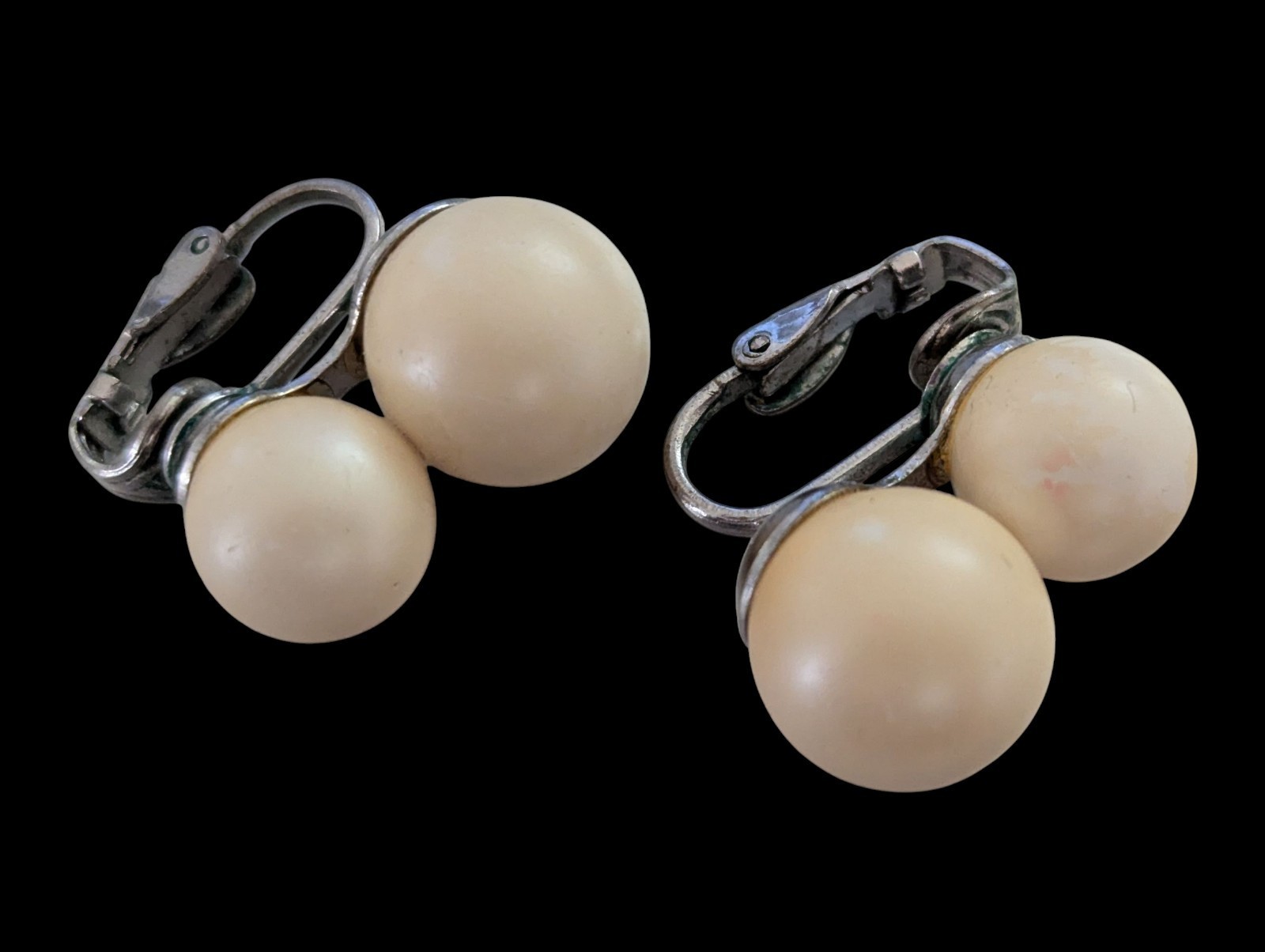Vintage 1960s Creamy Simulated Pearl Silver Tone Clip On Round Earrings Party