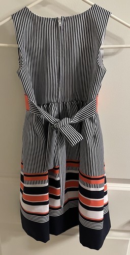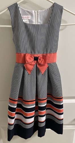 BONNIE JEAN Girl's Size 6X Dress Sleeveless Striped Coral Navy White Bow