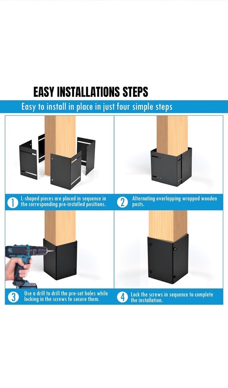 Post Base Protectors 4Pack Adjustable(Range 3.3-6 in) Protects Wood READ DESCRIP
