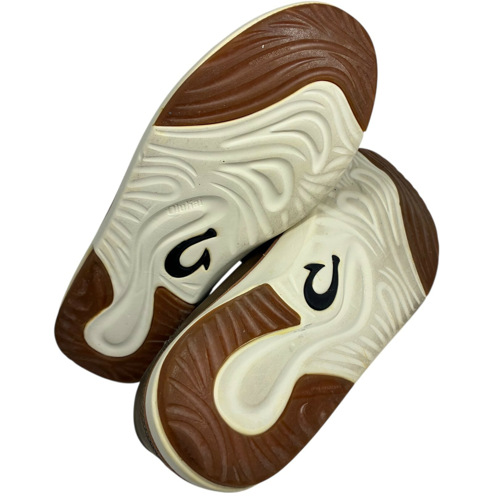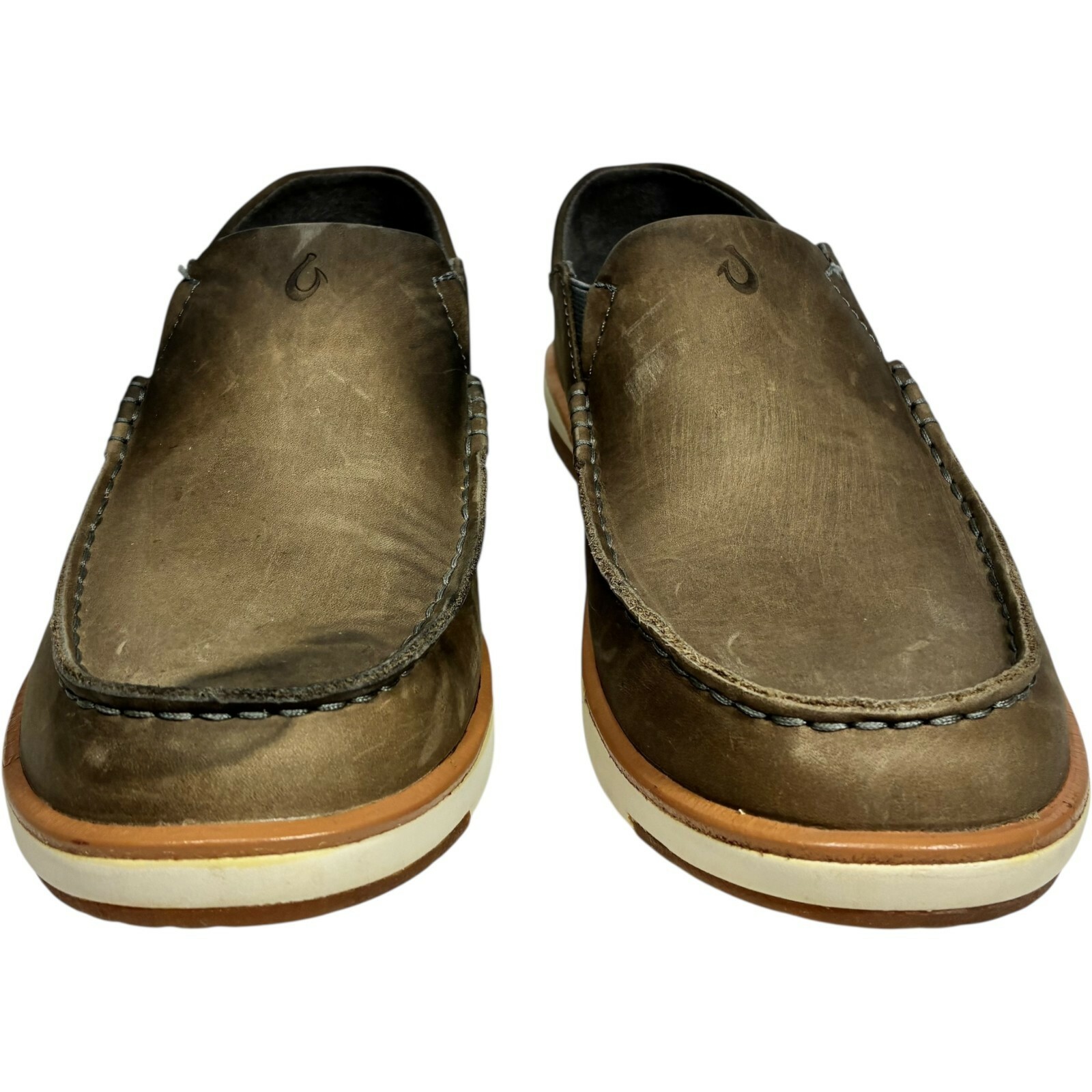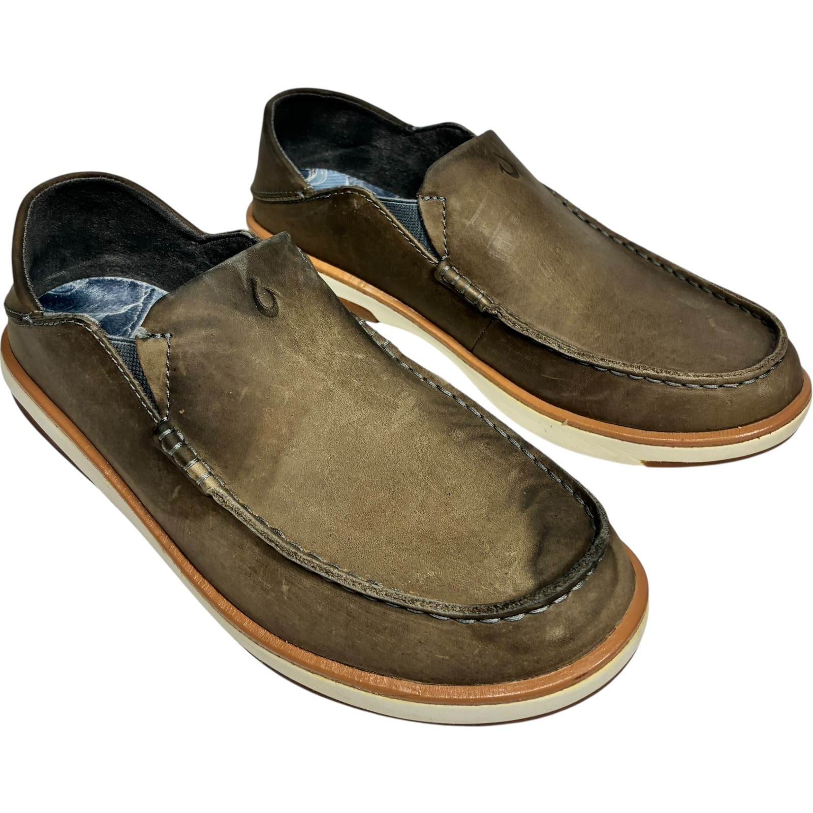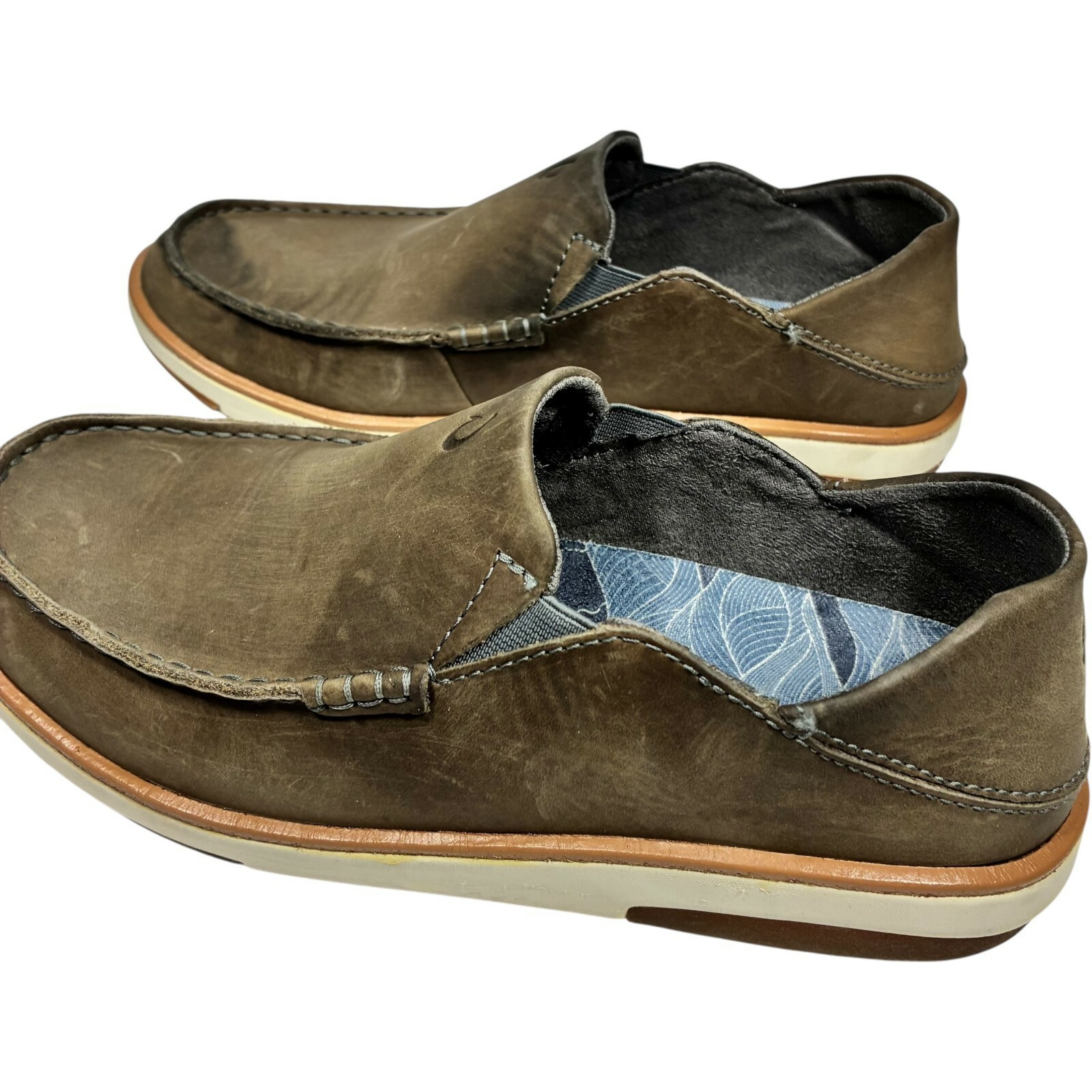 OluKai mens Kalia Leather Slip On Shoes Ash Grey Nubuck Loafers Clog Size 9 EUC