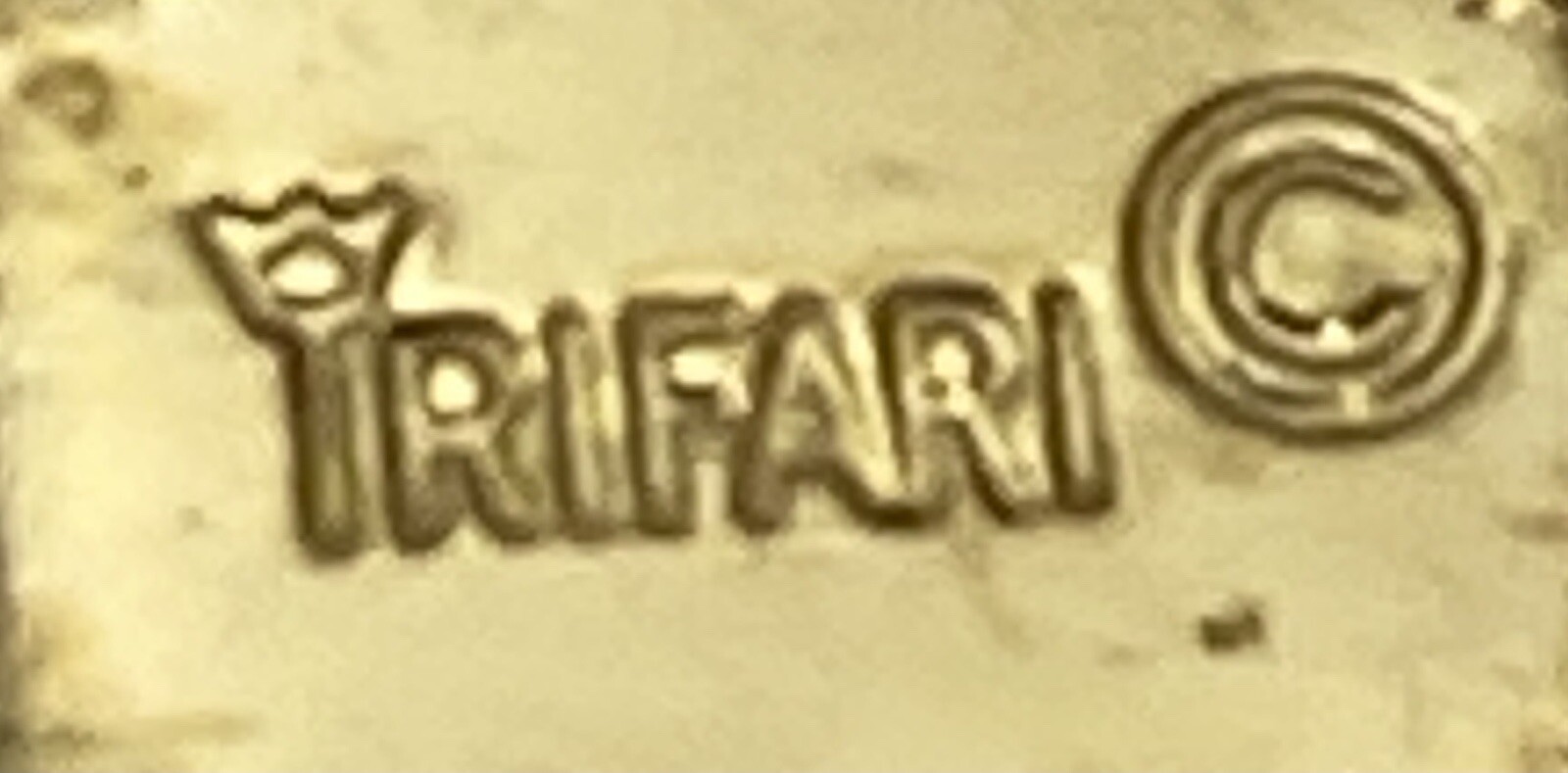 Vintage Trifari set in excellent condition, no peeling, stains, or corrosion. I believe this is a set with TRIFANIUM, a patented Gold plating by Trifari, that looks real and doesn't corrode.