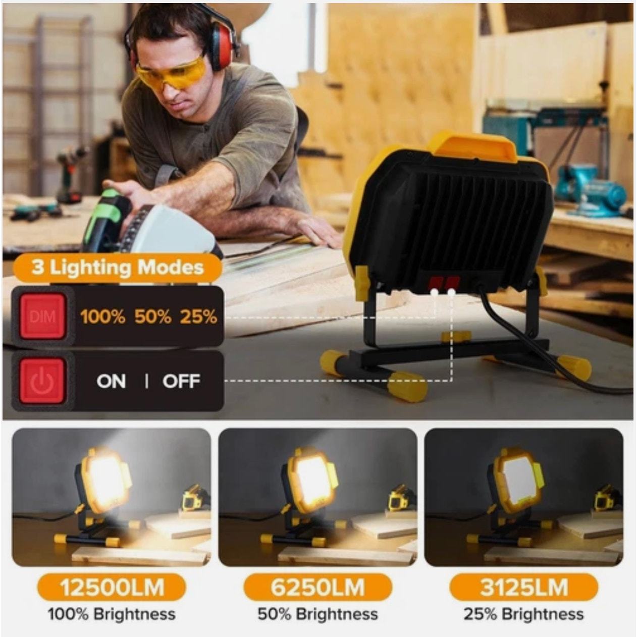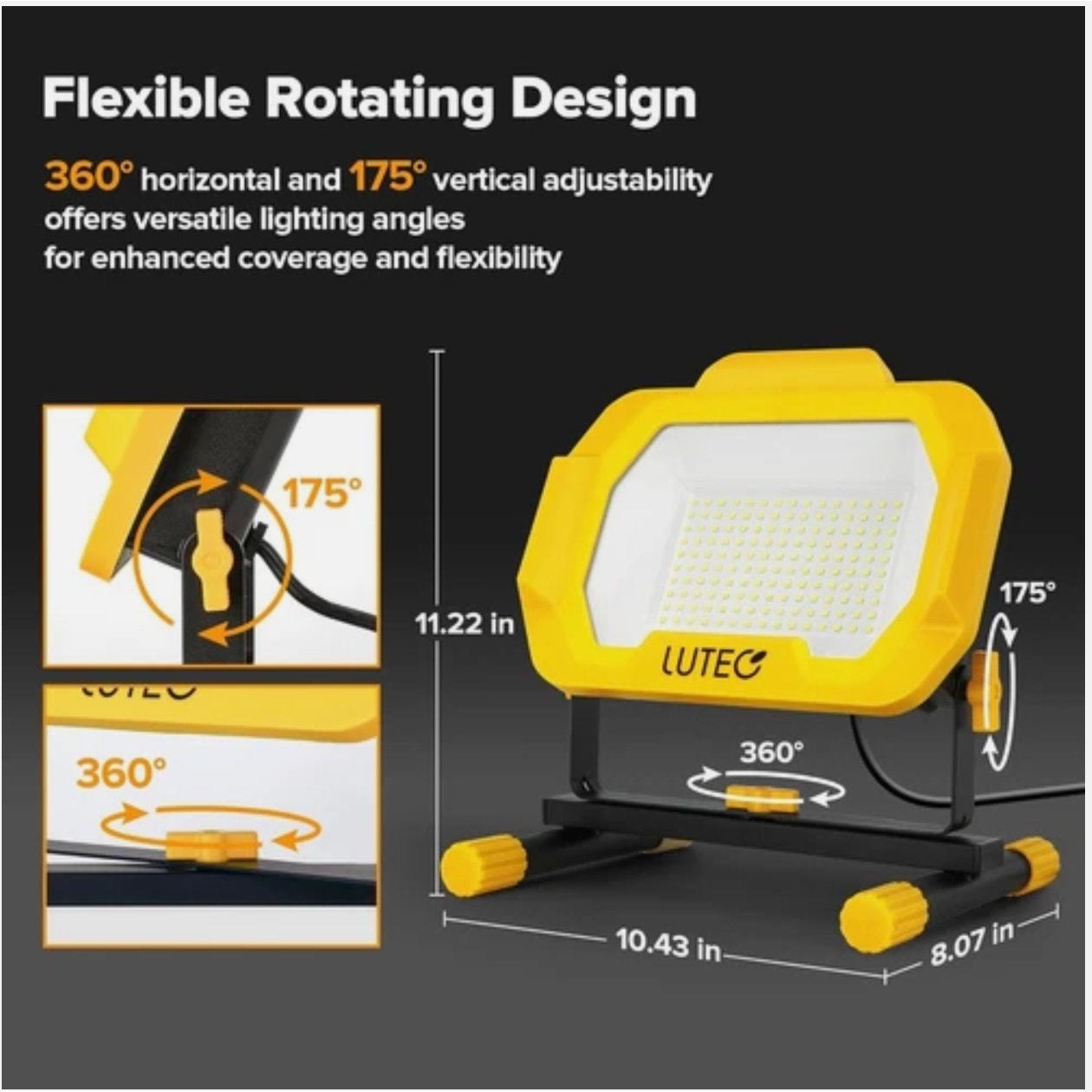 LUTEC 12500 Lumen LED Work Light, Dimmable Flood Lights with 3 Yellow