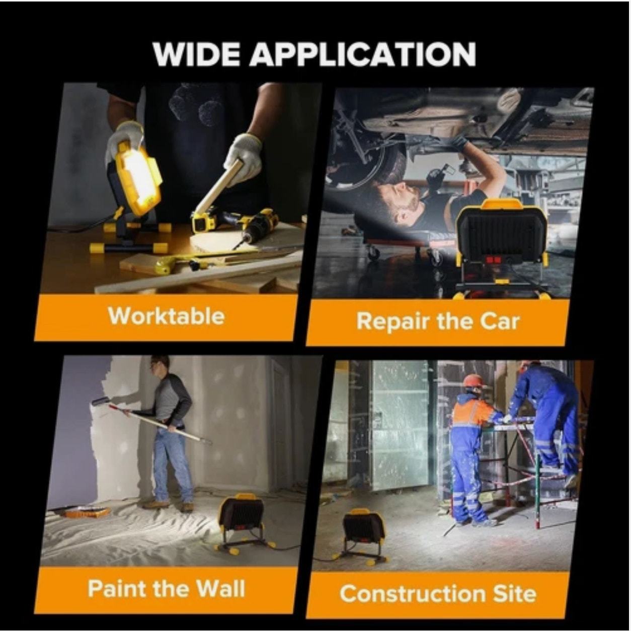 Flexibility Portable: The work lights on stand can rotate vertically 180 and horizontally 270, allowing you to easily customize your desired lighting angle. The lightweight and anti-slip handle make this lamp very portable, making it suitable not only for construction site lighting but also for outdoor camping and emergency lighting.