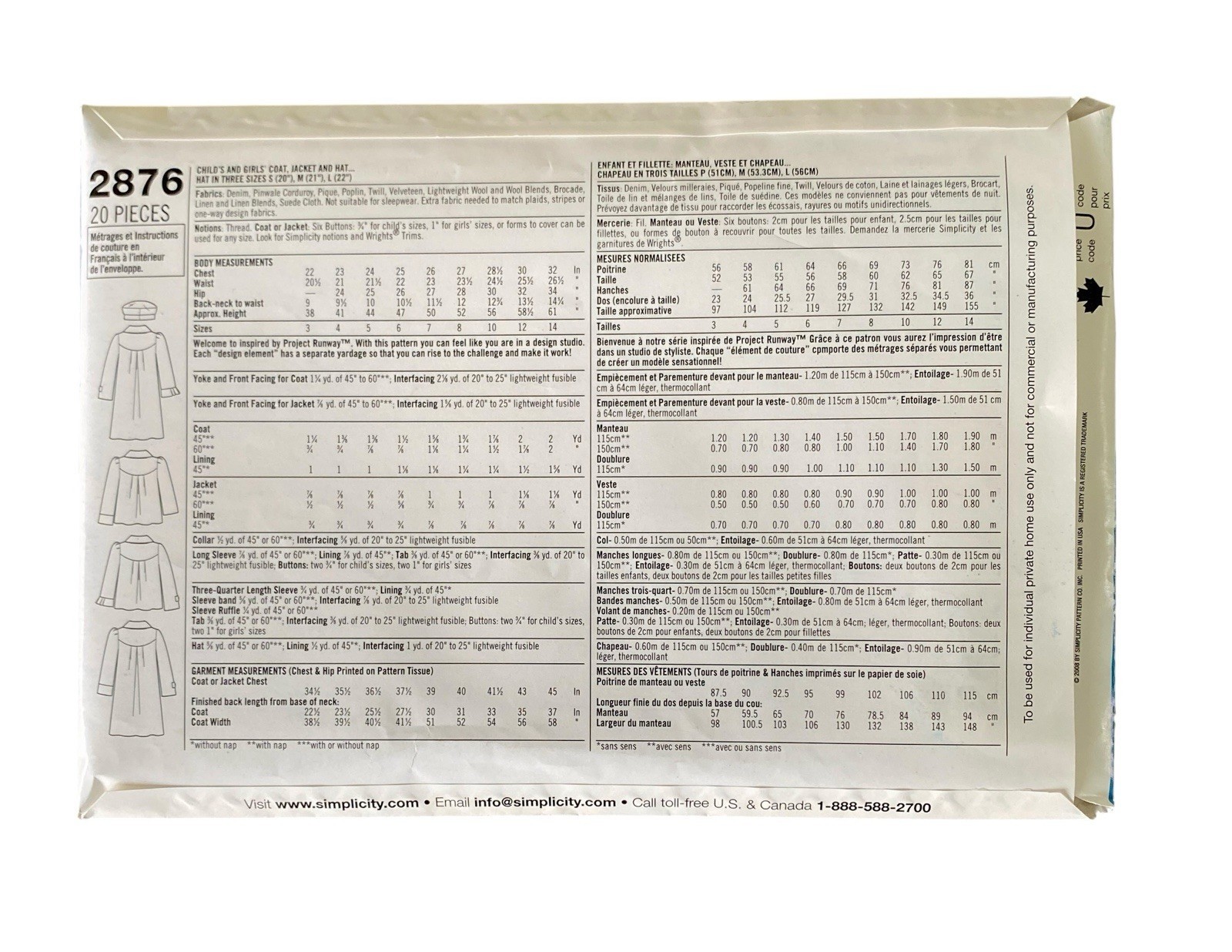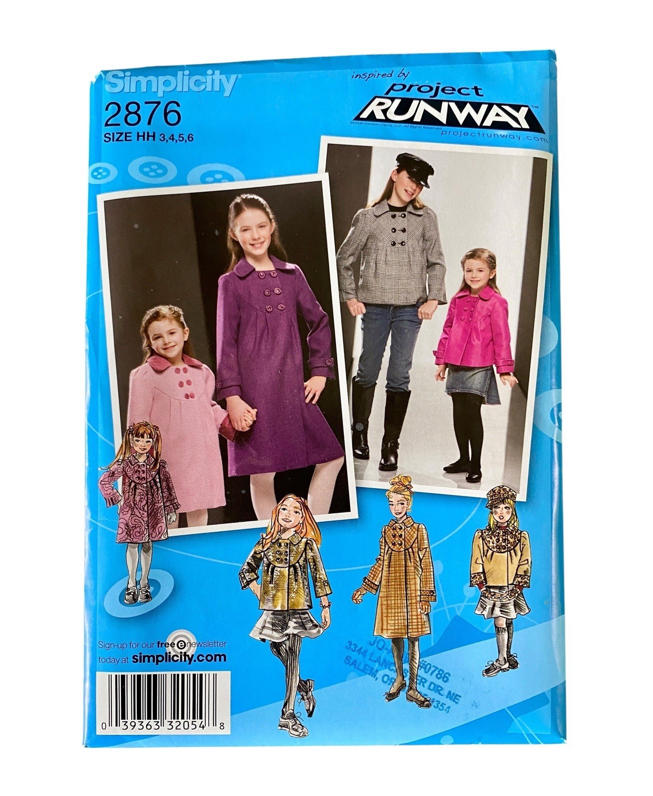 Project Runway Sewing Pattern 2876 Childs Coat Jacket Hat Size HH 3 4 5 6 Uncut