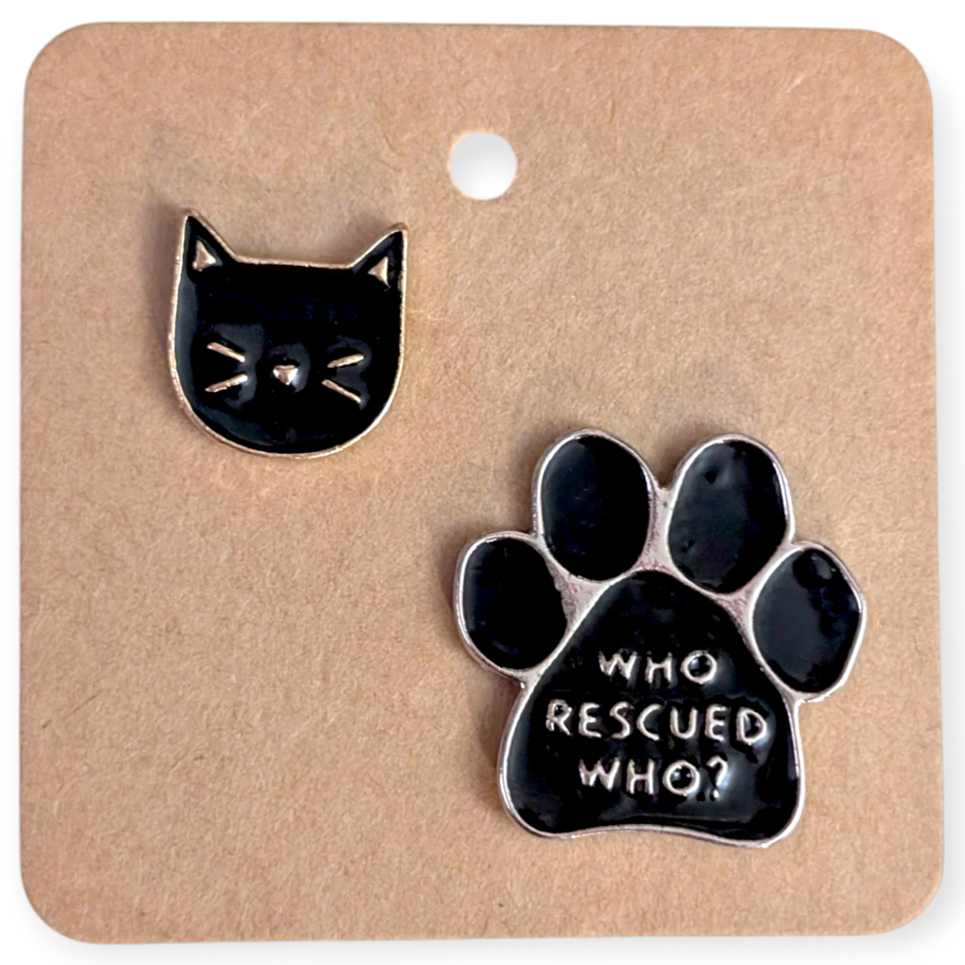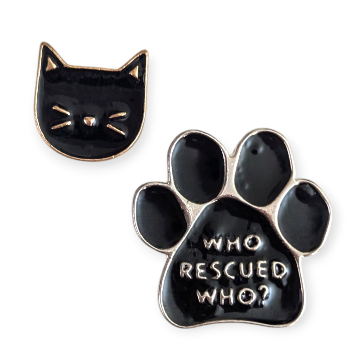 Animal Enamel Pins: Black Cat Paw Print, Who Rescued Who?