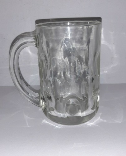 Vintage Thumbprint Beer Stein Mug With handle Clear Glass 12oz