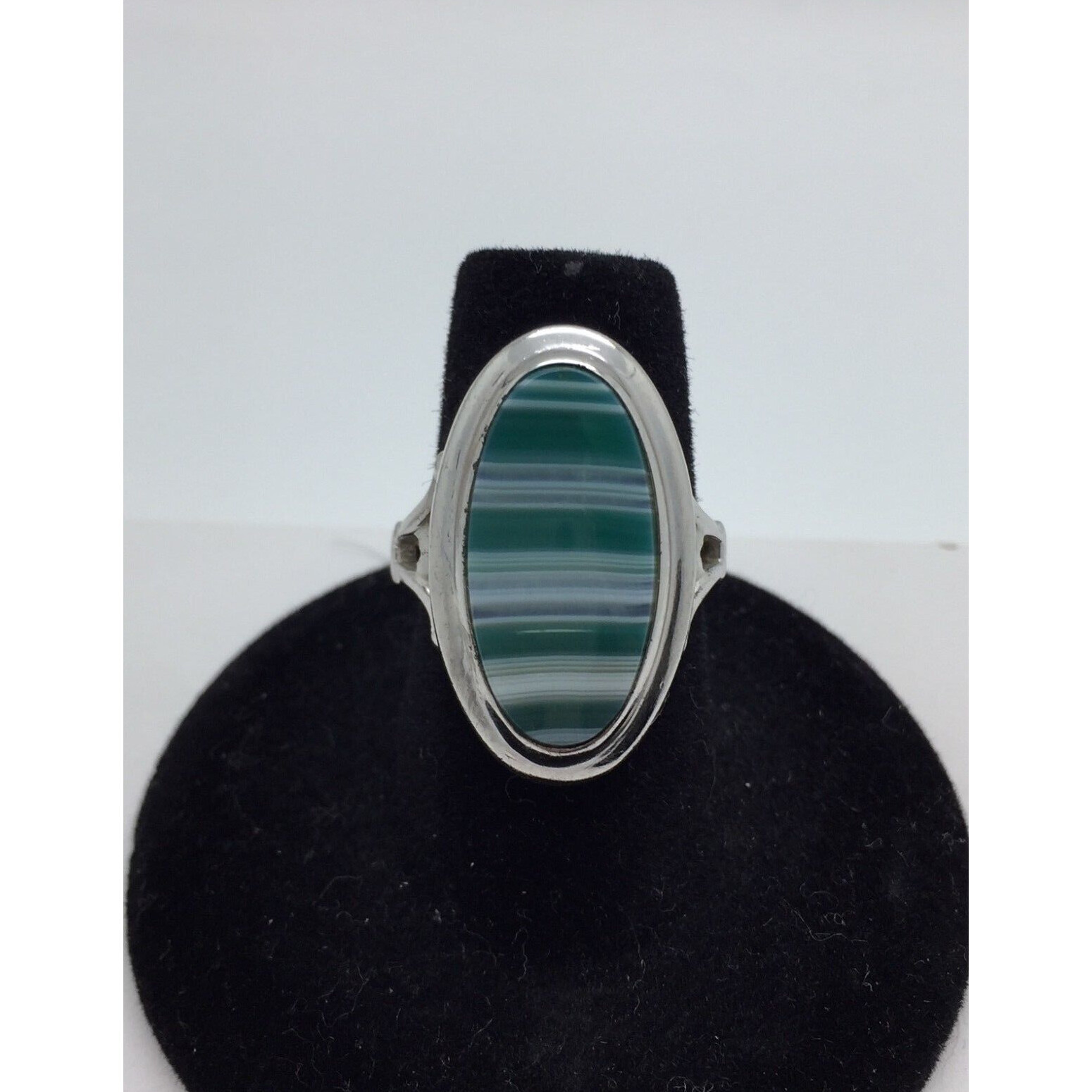 Espo Sterling Silver Green Lacy Natural Agate Ring Size 6.75 Sky