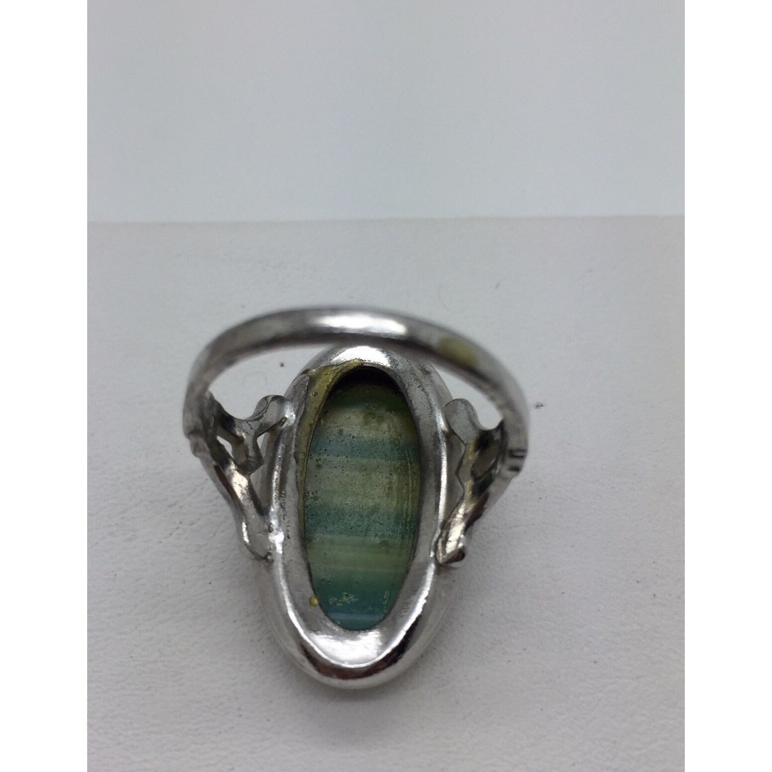 ESPO STERLING SILVER GREEN LACY NATURAL AGATE RING SIZE 6.75 SKY