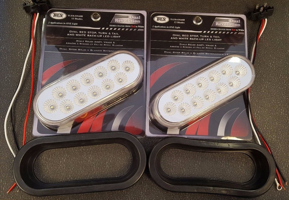 (2) 12 LED Trux Dual Revolution 6" Oval Clear Lens Stop Tail Turn Back-Up Kit