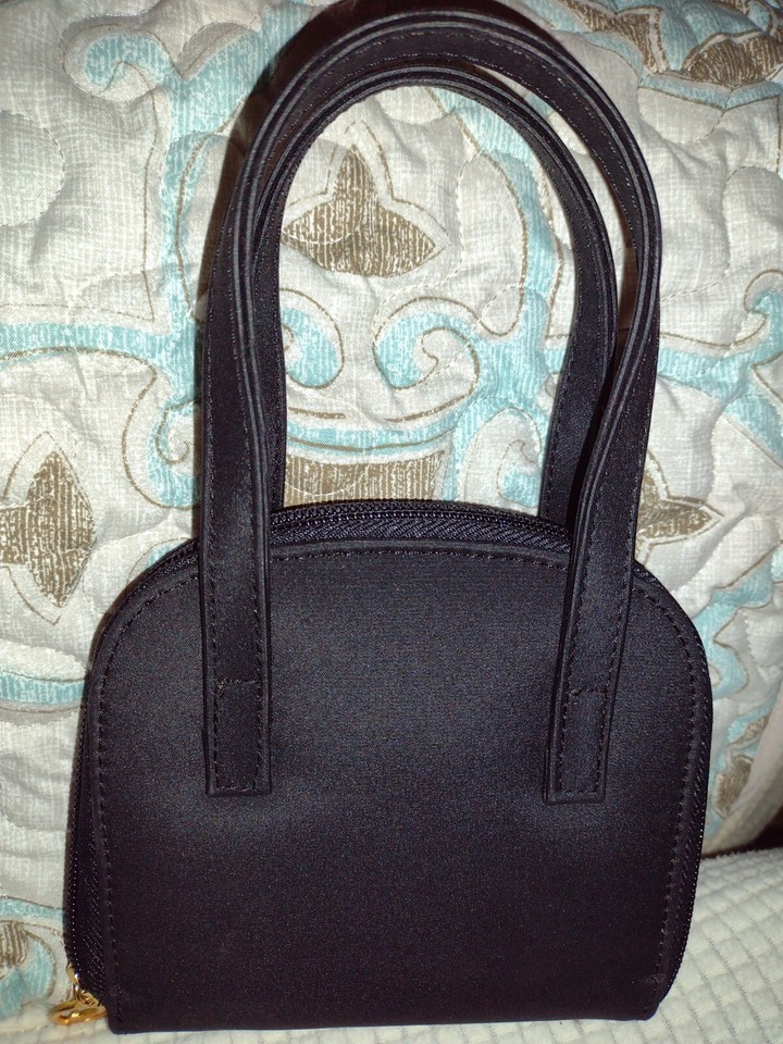 ST JOHN Mini Fabric Little Black Dressy Nylon Zipper Around Goldtone Logo