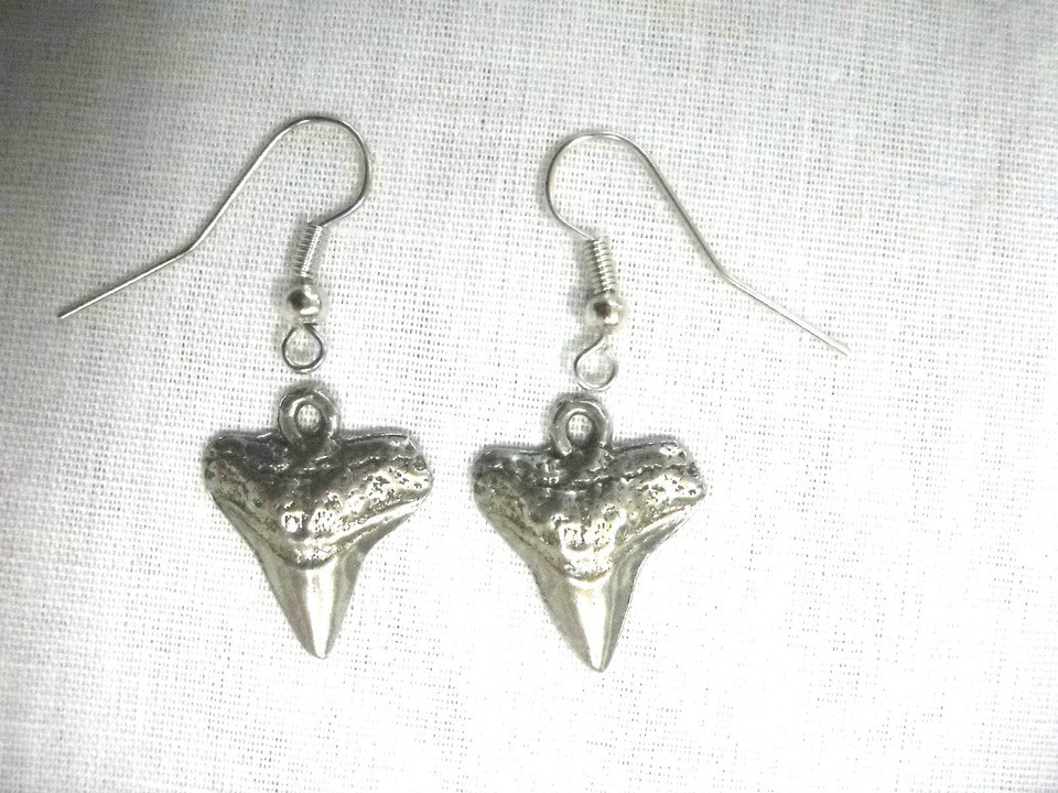 SHARK TOOTH OCEANIC 3D GREAT WHITE SHARK TEETH DEEP SEA BEACH CHARM EARRINGS