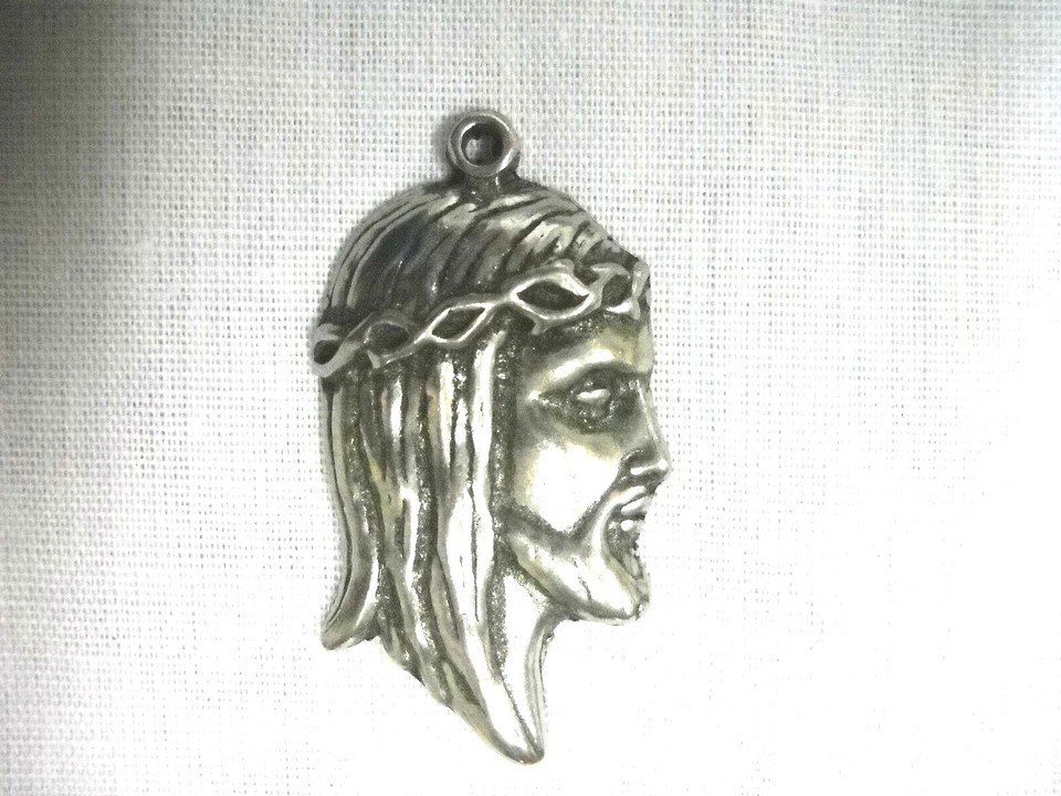 JESUS CHRIST WEARING CROWN OF THORNS PROFILE HEAD PEWTER PENDANT ADJ NECKLACE