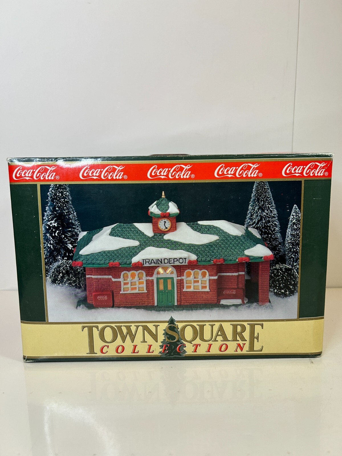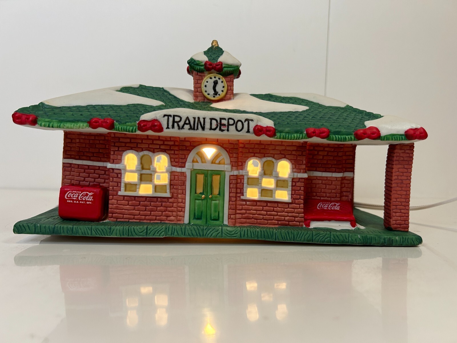 Add vintage charm to your display with the 1992 Coca-Cola Town Square Collection ?The Train Station.? This ceramic lighted building is designed as a festive railway station, complete with Coca-Cola signage, holiday trim, and fine hand-painted details.