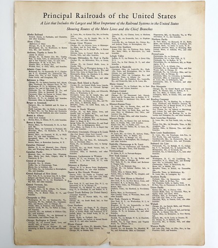Principal Railroads Of The United States 1935 14 x 11" Main Line Branches LGAD99