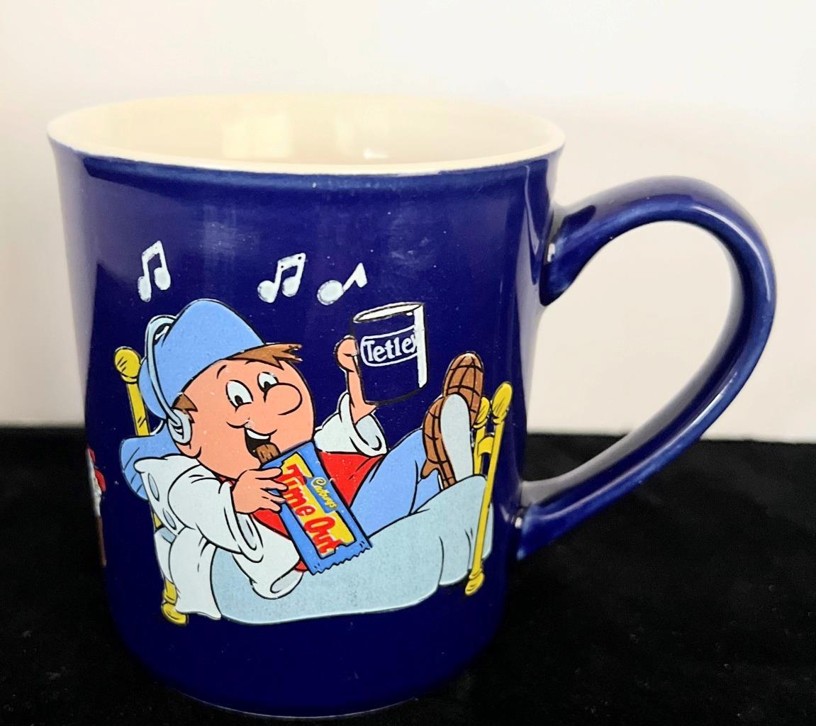 Vintage Tea Coffee Mug Cadbury's Time Out Tetley Tea Folk Blue Ceramic UK