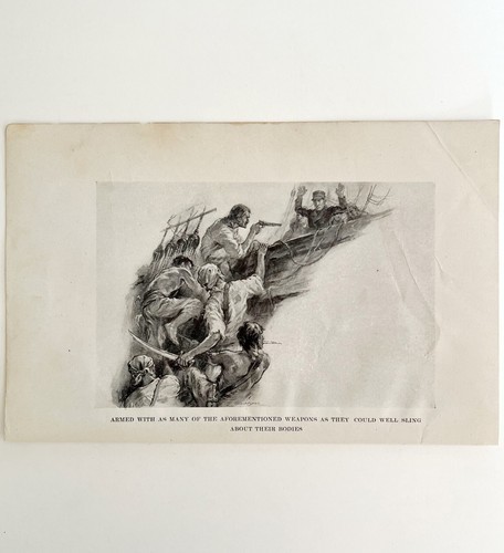 Pirates With Weapons Capturing Exertion Boat Art Print 1920s Lost Ships DWS8