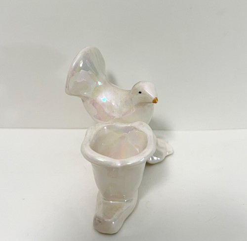 White Dove Bird Iridescent Ceramic Candle Holder Vintage 1980-90s 3.5" PorcBin1