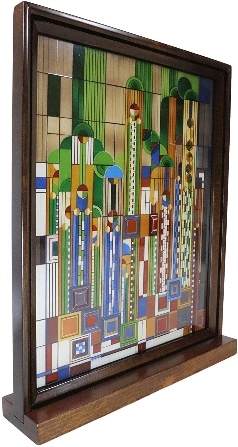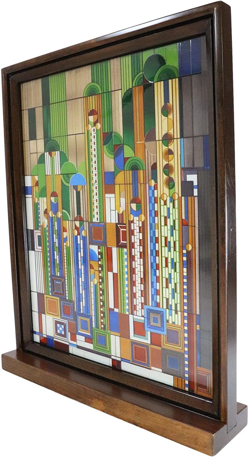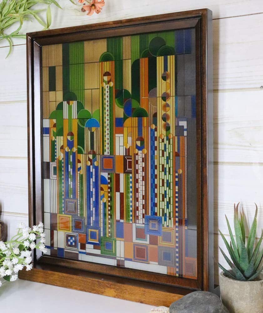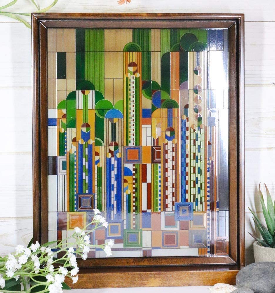 Ebros Frank Lloyd Wright Cactus Flowers Stained Glass Plaque Wall Hanger 15"H