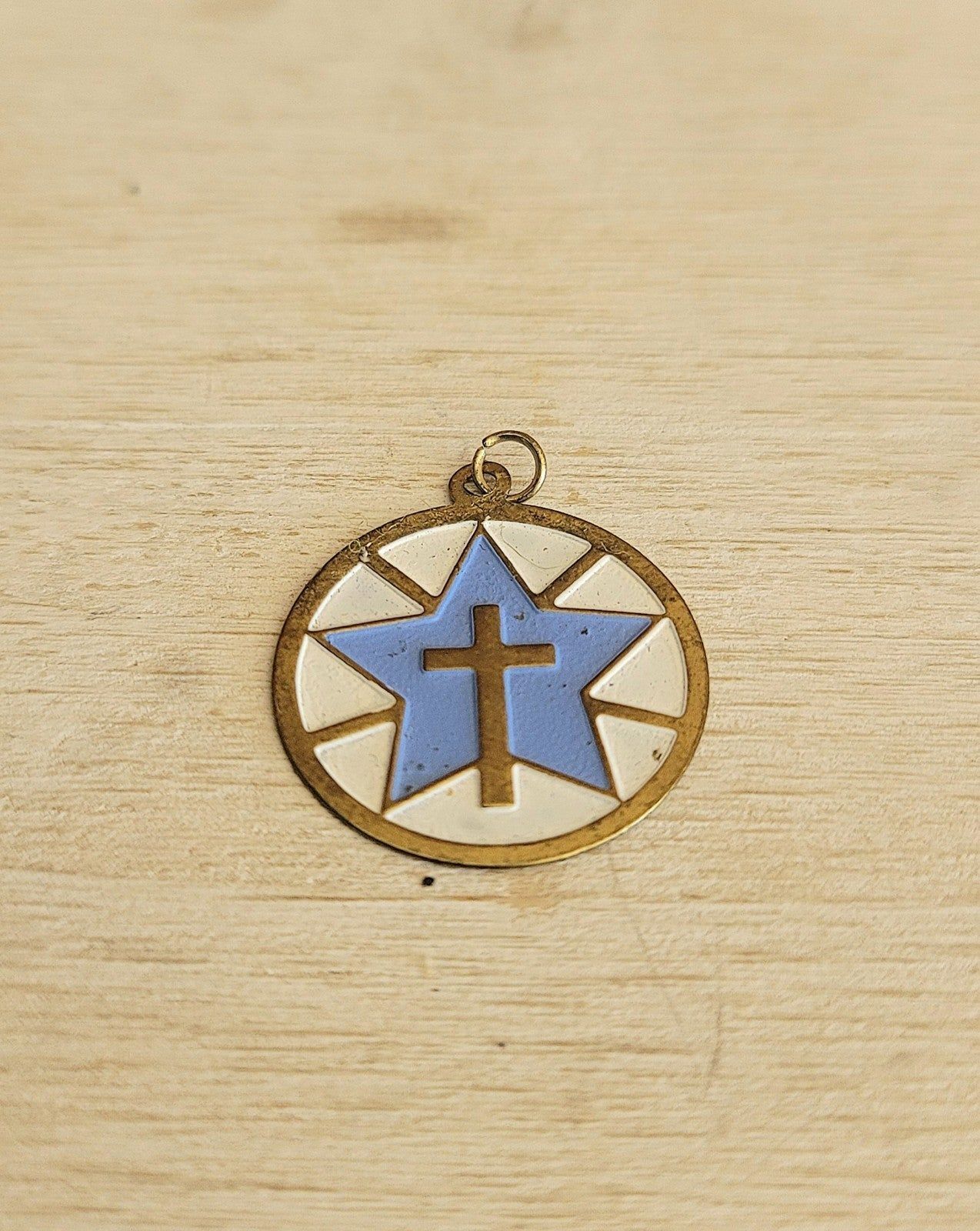 Vintage Religious Charm Pendant Star Crucifix Cross 1960