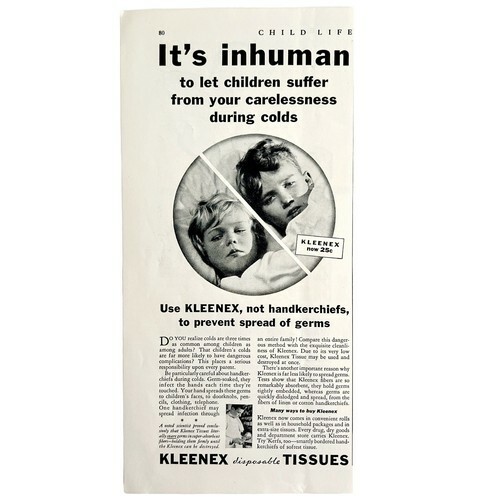 Kleenex Dispoable Tissues 1933 Advertisement Children Suffer From Colds DWKK12