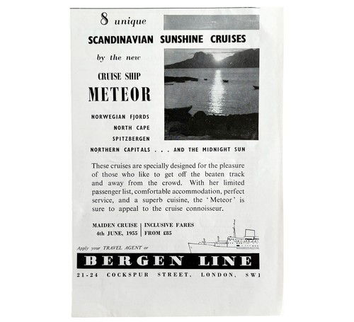 Scandinavian Sunshine Cruises 1955 Advertisement UK Import Bergen Line DWII8