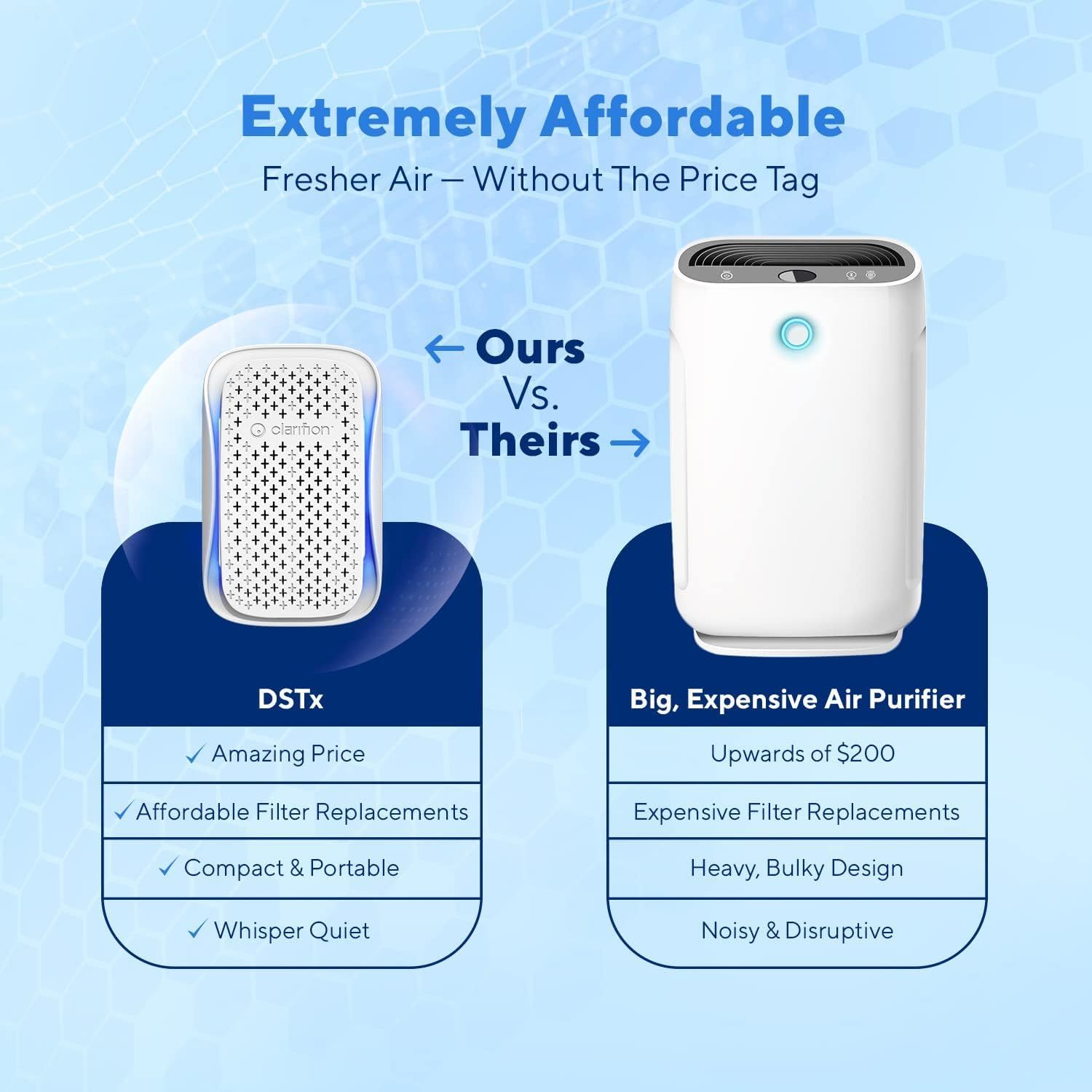HEPA Air Purifiers Pets and Home: Clarifion DSTx uses a negative ionizer plus a HEPA Filter that may help reduce airborne dust, smoke, pet dander, odors and may help improve air in any room.