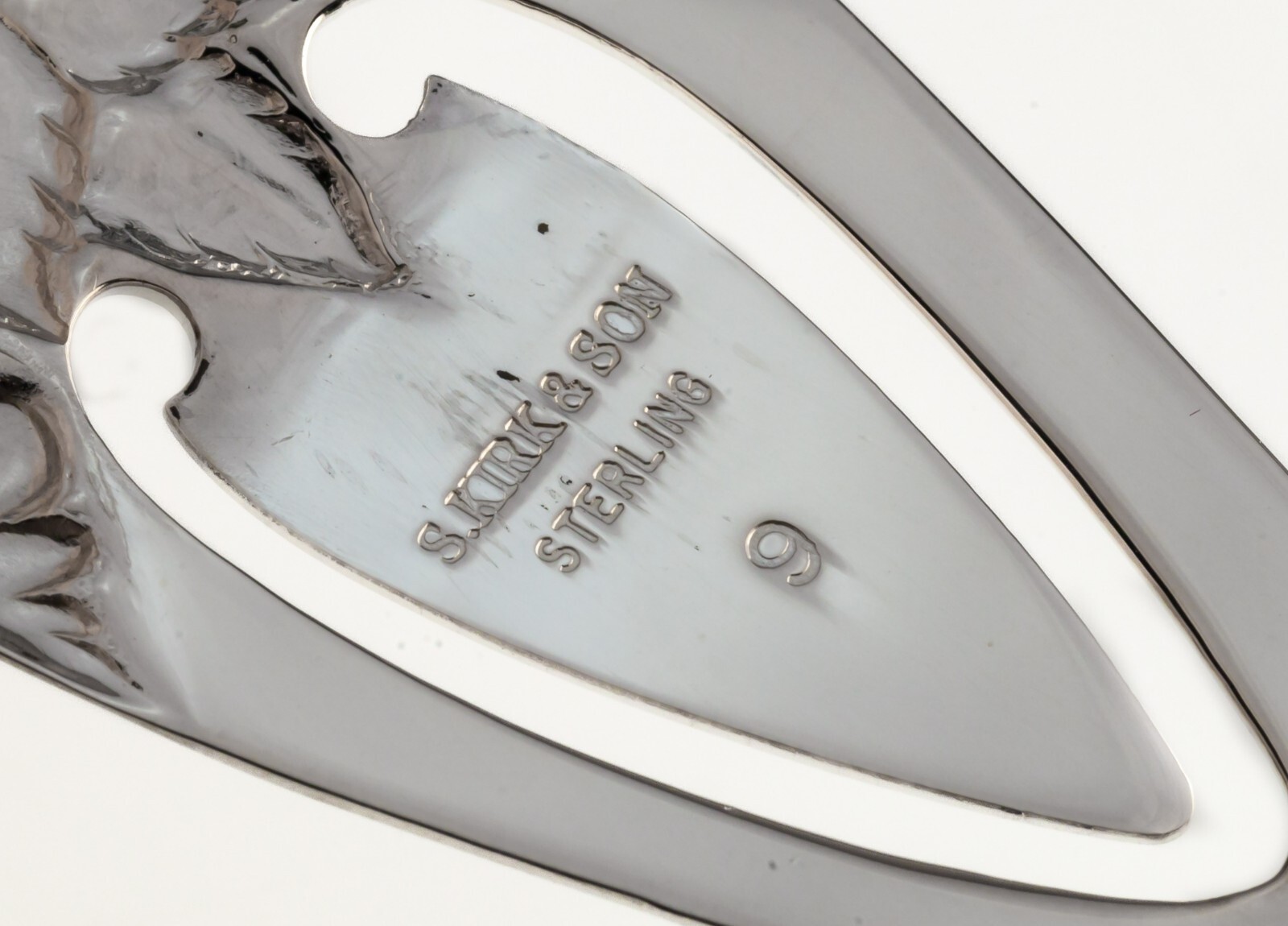 Hermoso marcador floral de plata esterlina S. Kirk y Son Vintage