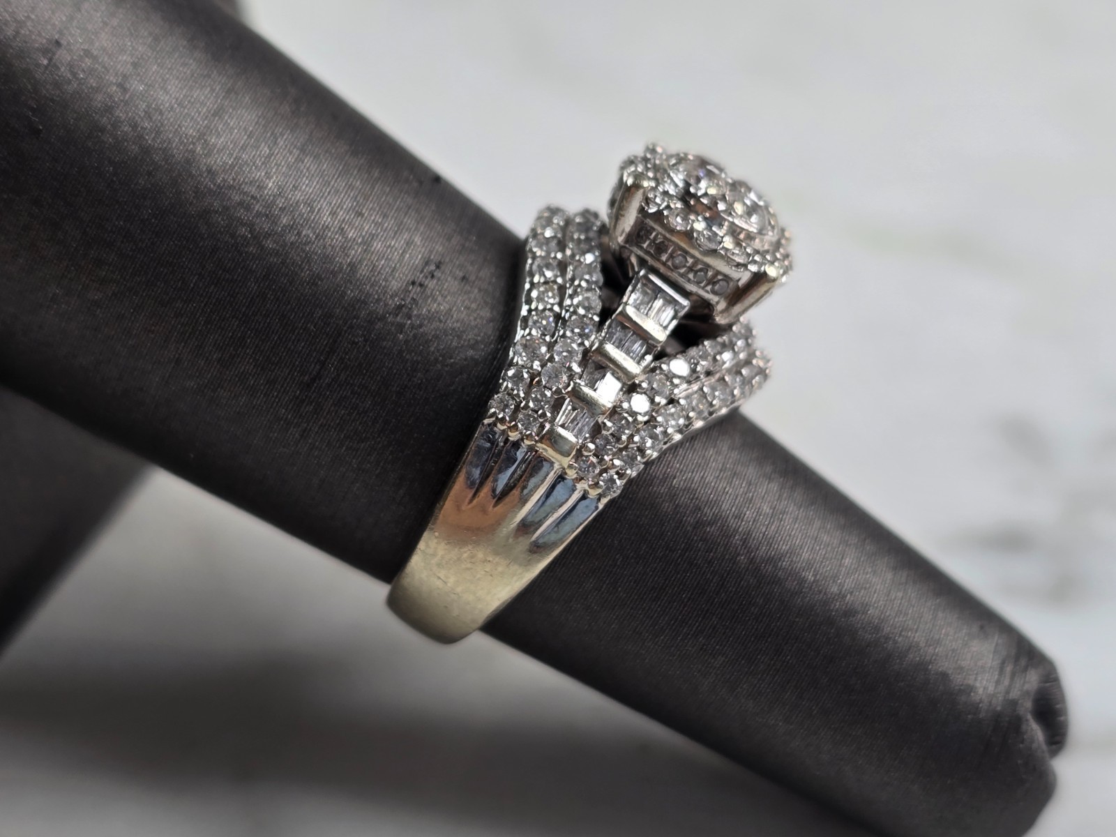 Womens Vintage Estate 10K White Gold Diamond Ring 8.5g, E4908