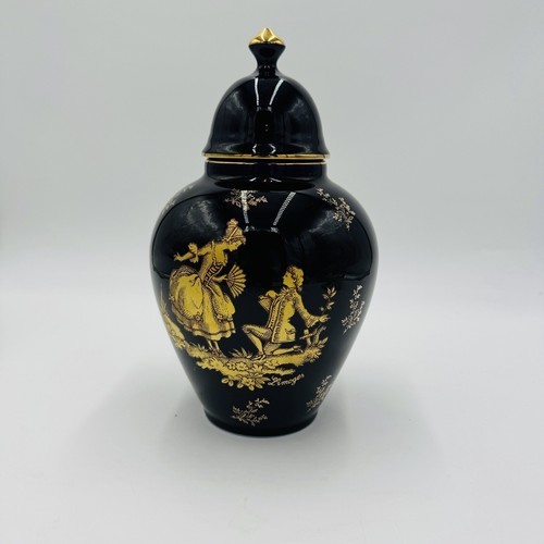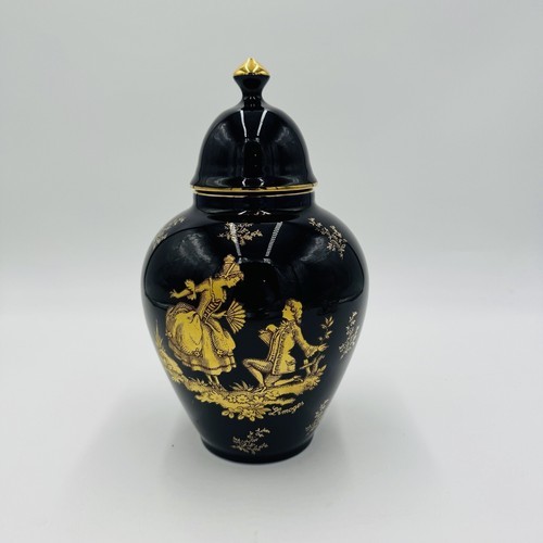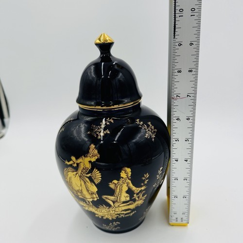 Limoges France Cobalt Blue Urn W/ Lid courting couple porcelain 9.5” Gold Trim