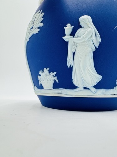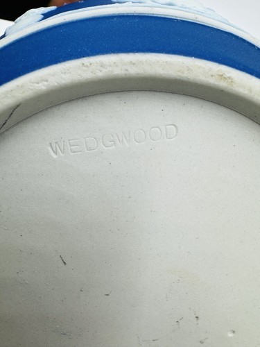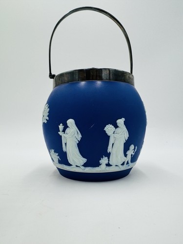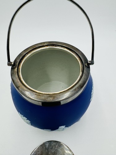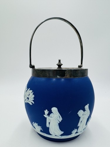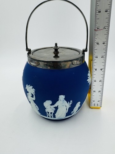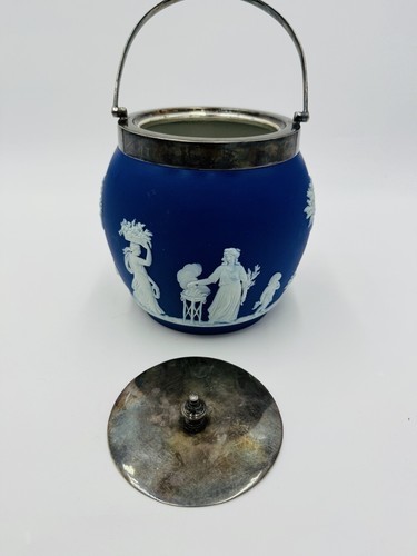 Wedgwood Jasperware Dark Blue Biscuit Lid Dipped White Round Cookie Jar 1930’s