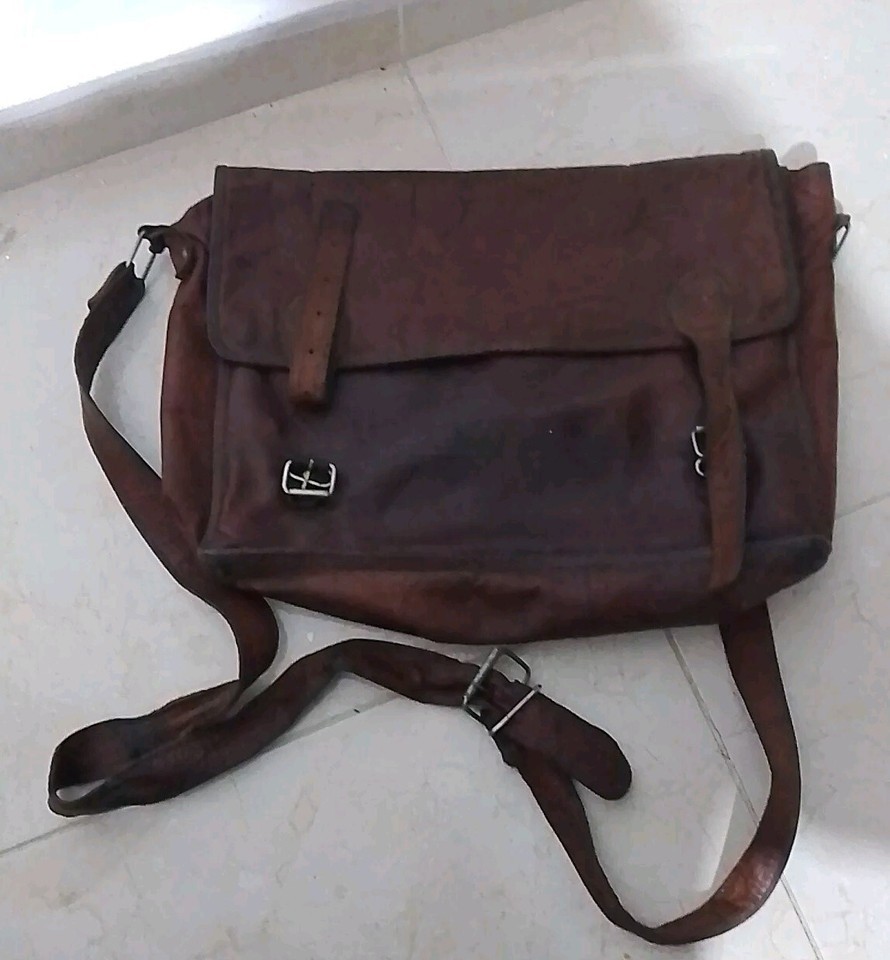 Rare Vintage Brown Leather Messenger Bag,Satchel, Antique- Used-Old Handmade