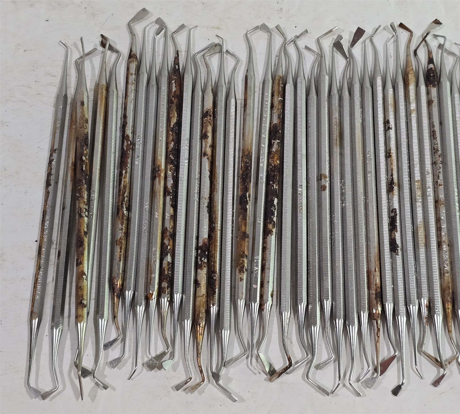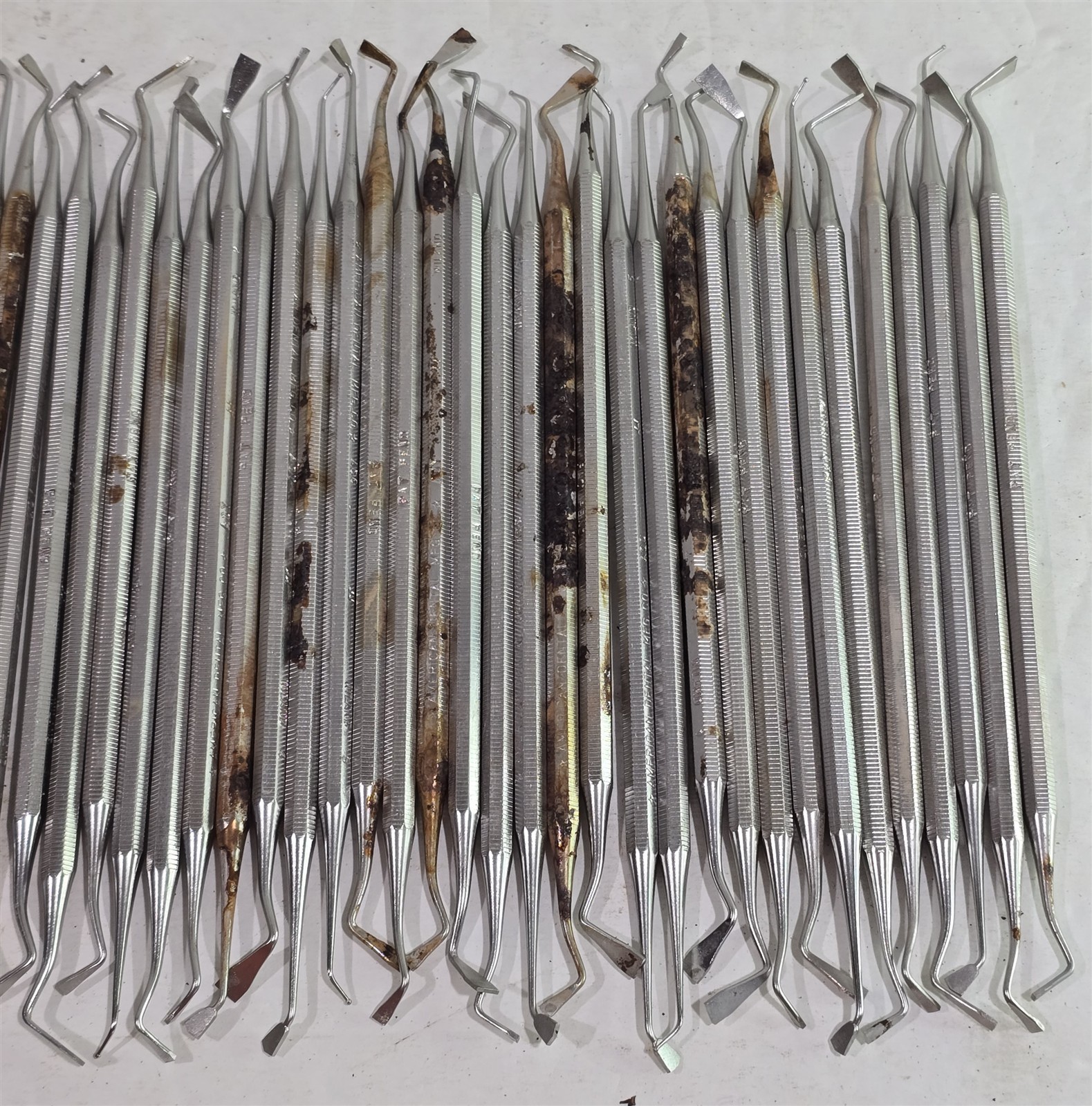 This sale is for a lot of fifty (50) vintage dental instruments, I bought an old dentist's office and the basement is filled with goodies, all the same, very rusty muddy (there was a flood in the basement at one point), great for crafts and steampunk, made by American Dental Mfg Co, what you see is exactly what you get, from a smoke free home.