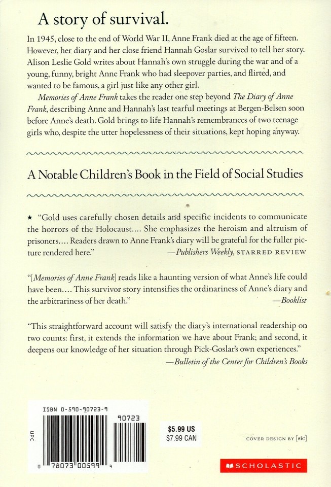 Memories Of Anne Frank: Reflections Of A and 19 similar items