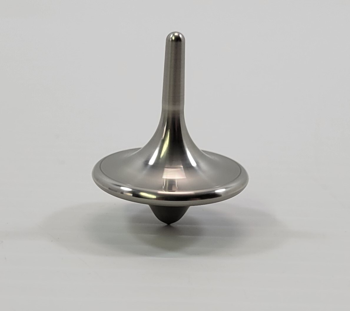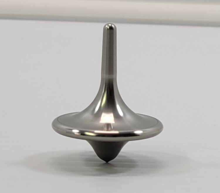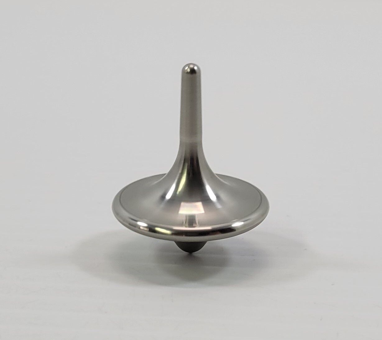 *B91) Inception Inspired Polished Silver Tone Metal Spinning Top Fidget Toy