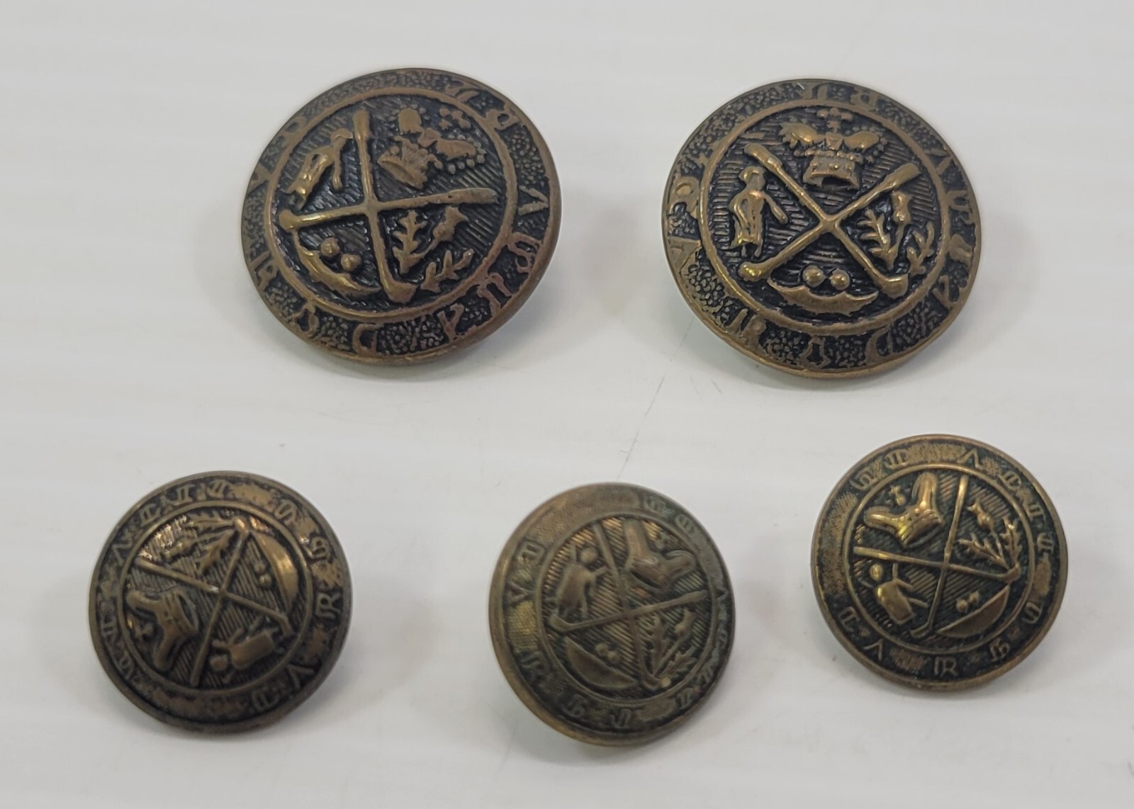 *Z22) Mixed Junk Drawer Lot of 5 Vintage Bronze Coat of Arms Buttons