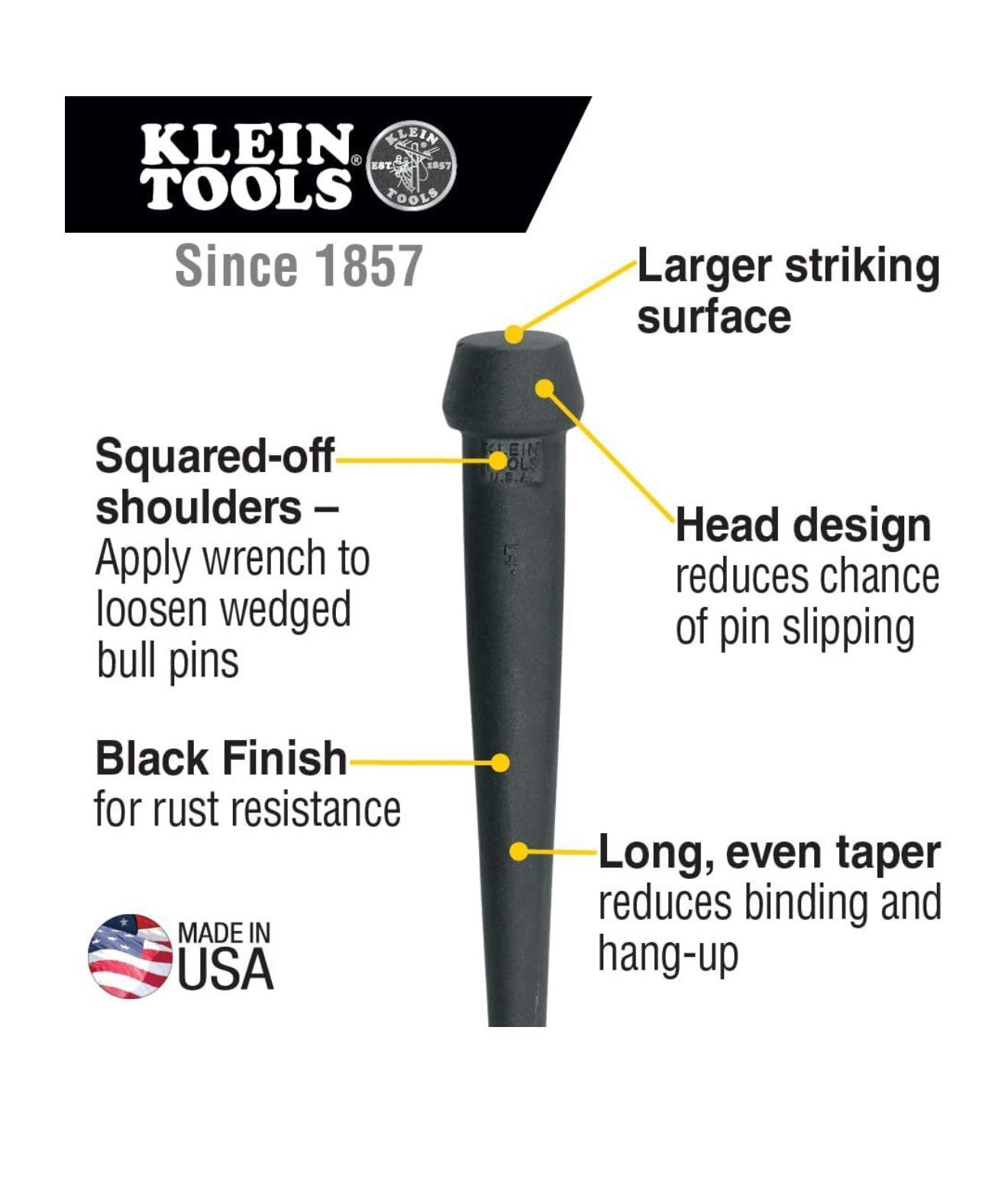 10” Klein Tools 3256 Broad-Head Bull Pin Made of Forged, Heat-Treaded Steel