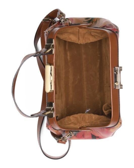 Leather Gracchi Frame Satchel With Crossbody Strap