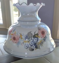 Vintage Large Glass GWTW Hurricane Lamp Pink/Blue Floral SHADE (10" fitter)
