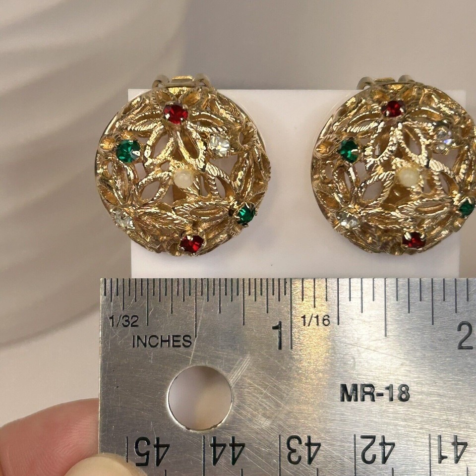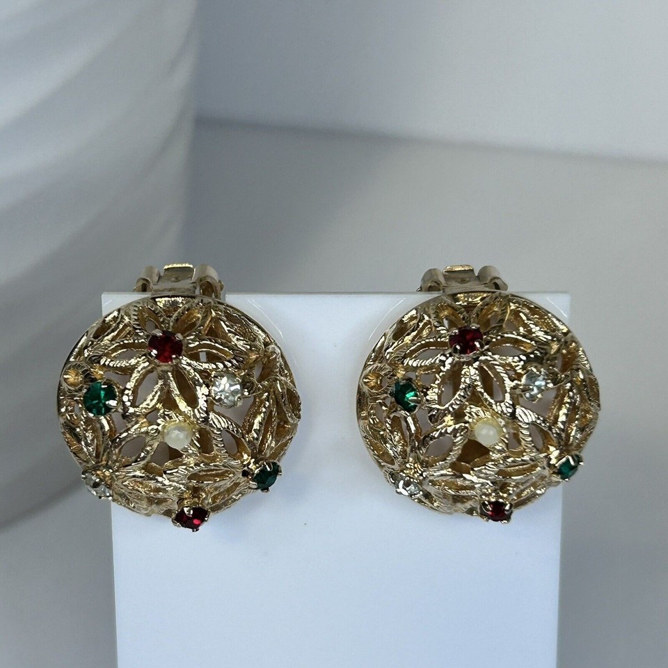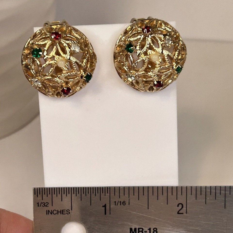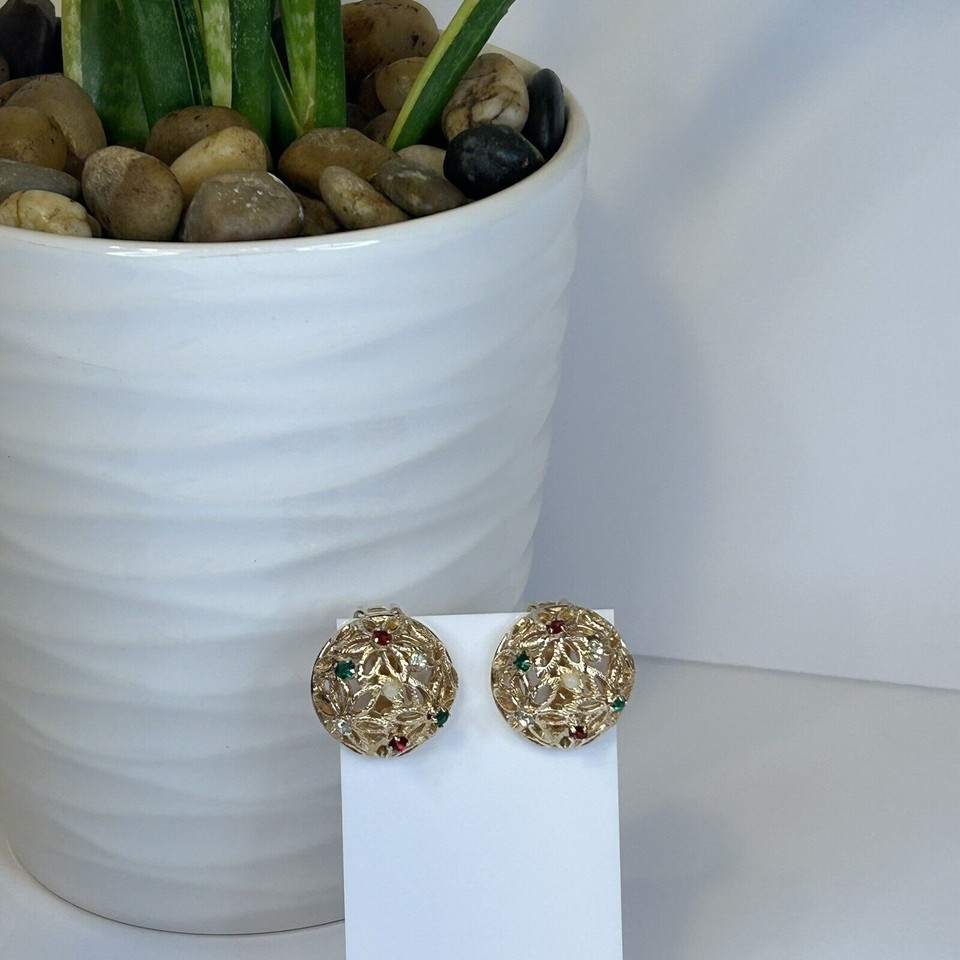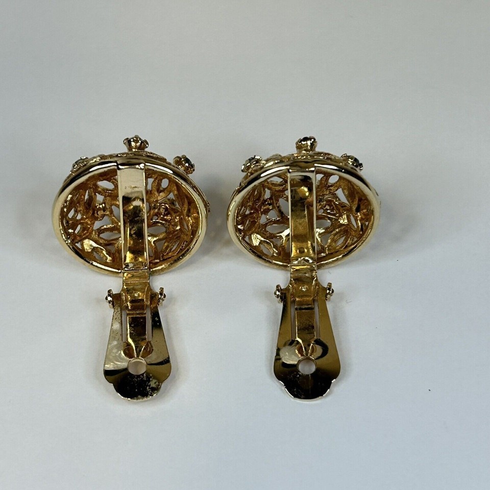 Beautiful BERGERE Rhinestone Textured Filigree Clip On Dome Earrings. Approx 3/4? diameter