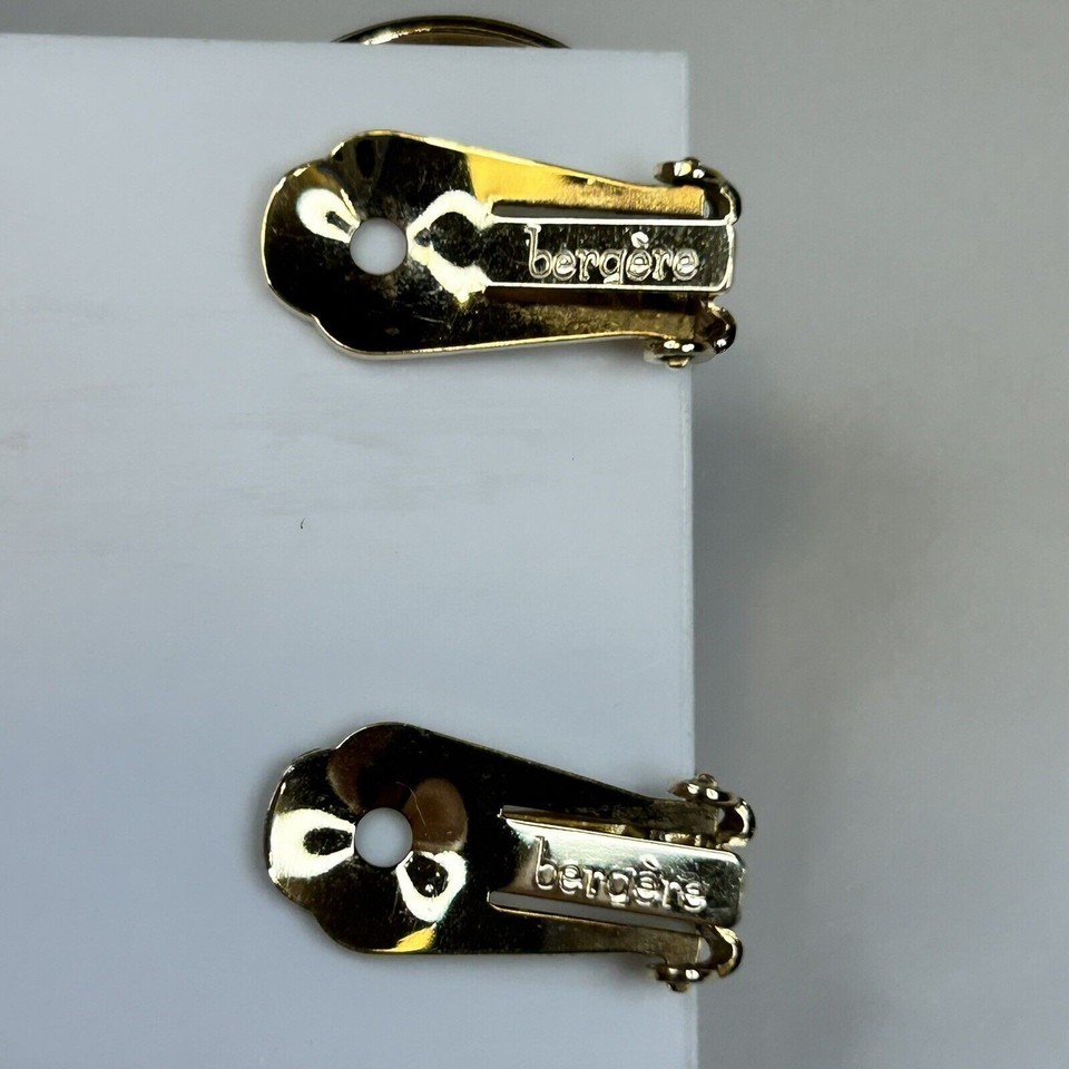 BERGERE Gold-Tone Textured Filigree Clip-On Earrings Rhinestones, Faux Pearl