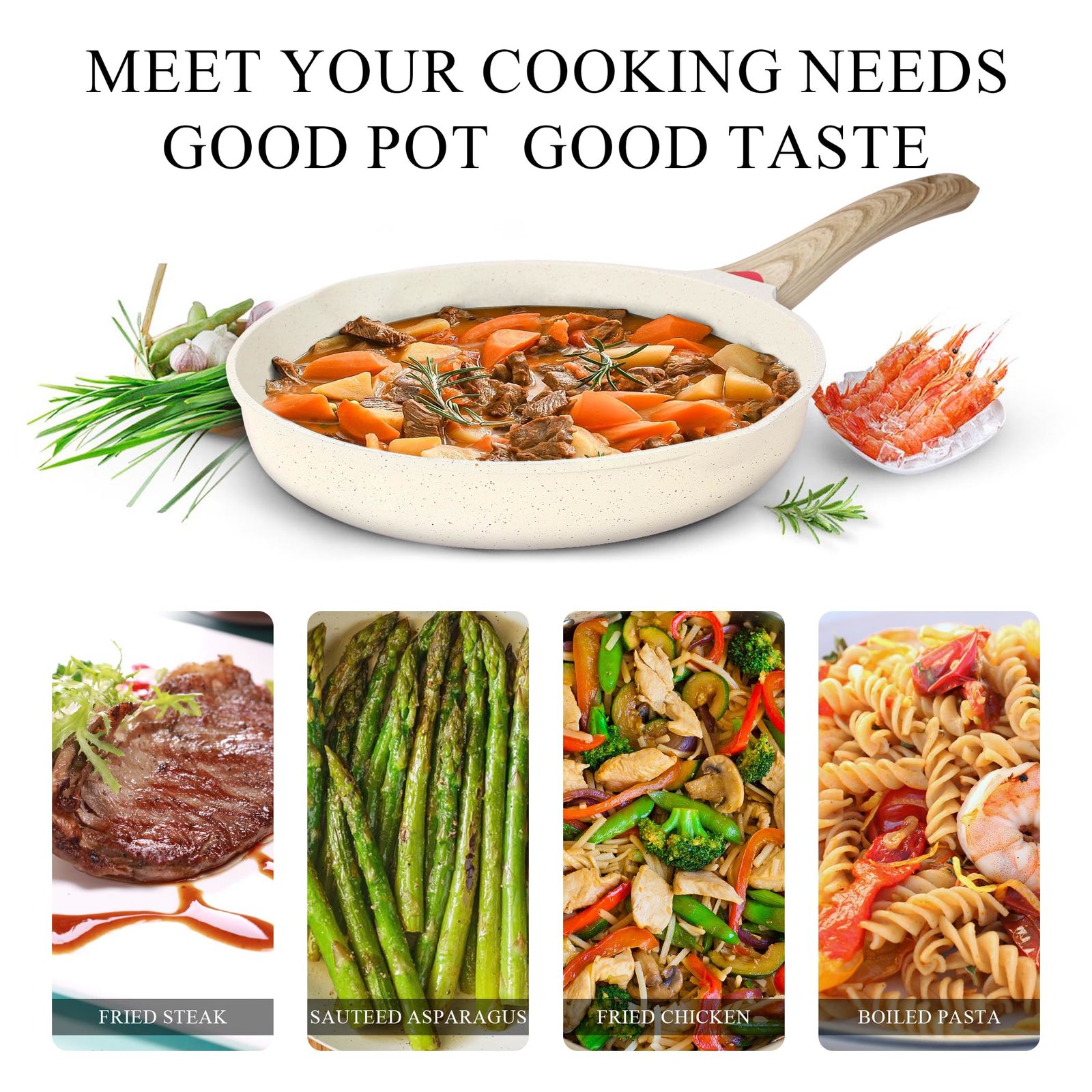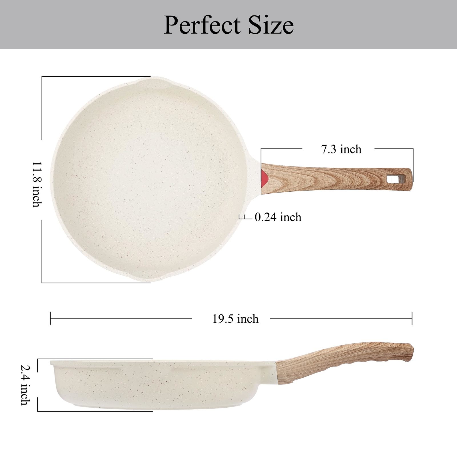 Vinchef Nonstick Frying Pan Anti Scratch,11 Inch Skillet Cast Aluminum Cookware, Induction Compatible White