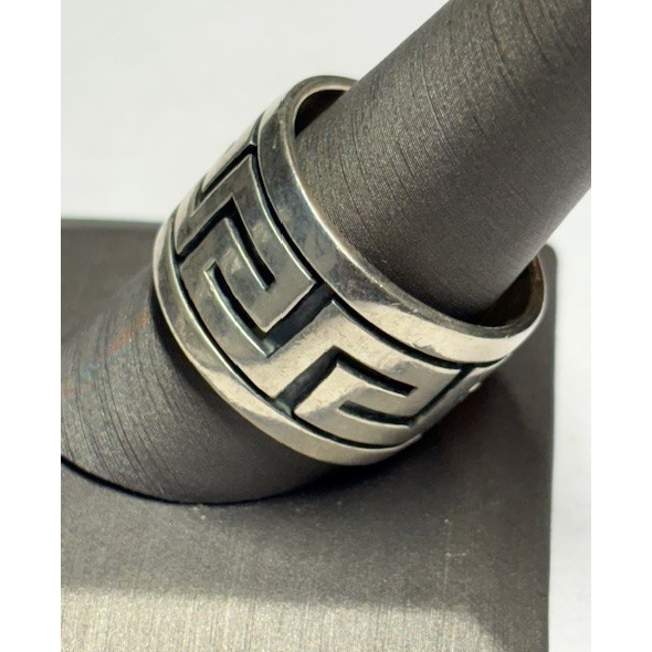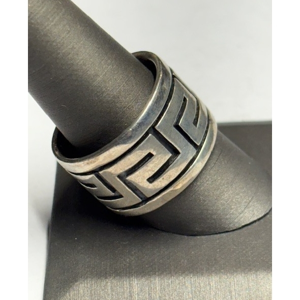MEN'S 925 STERLING SILVER GREEK KEY DESIGN WIDE AND HEAVY BAND RING SIZE 10 SKY