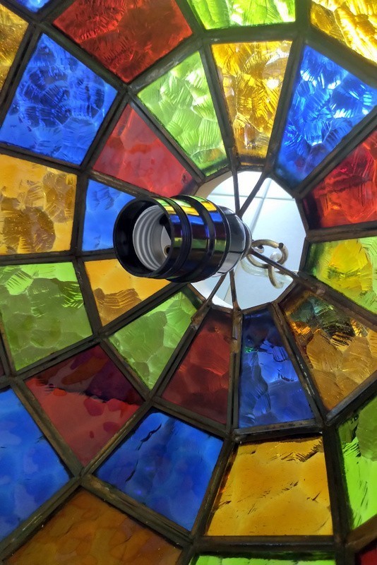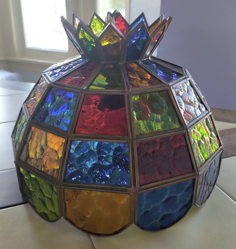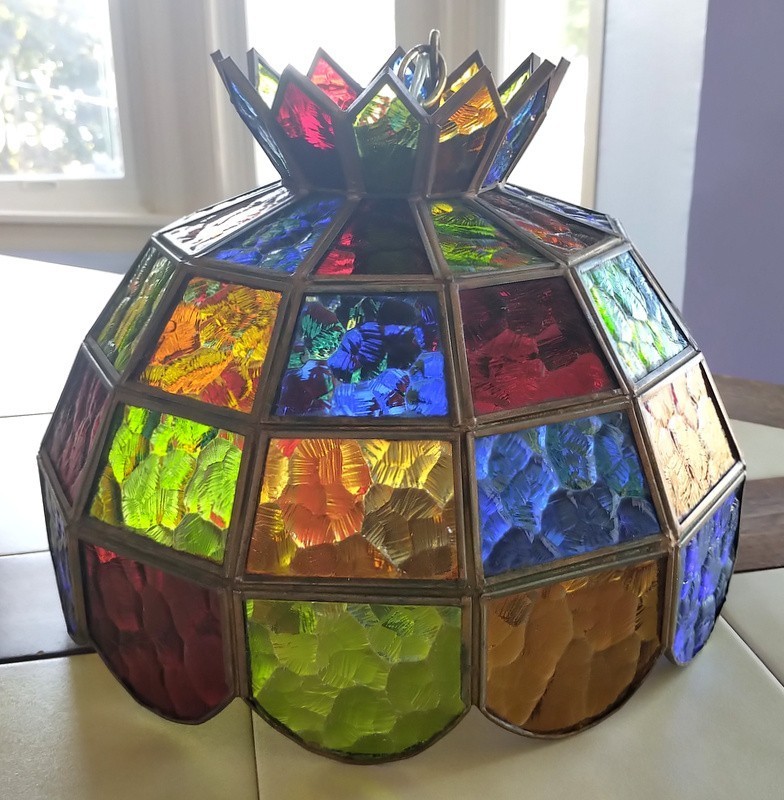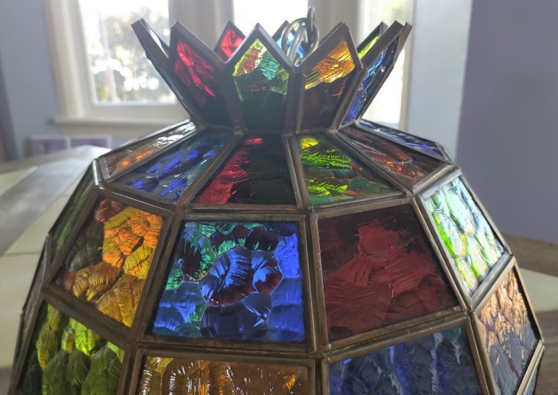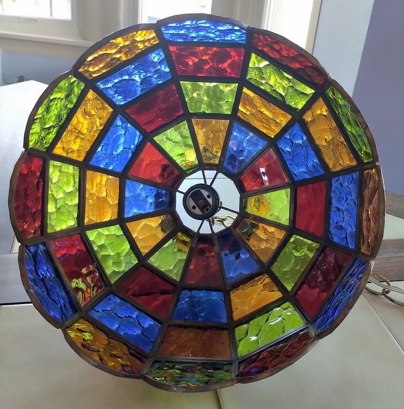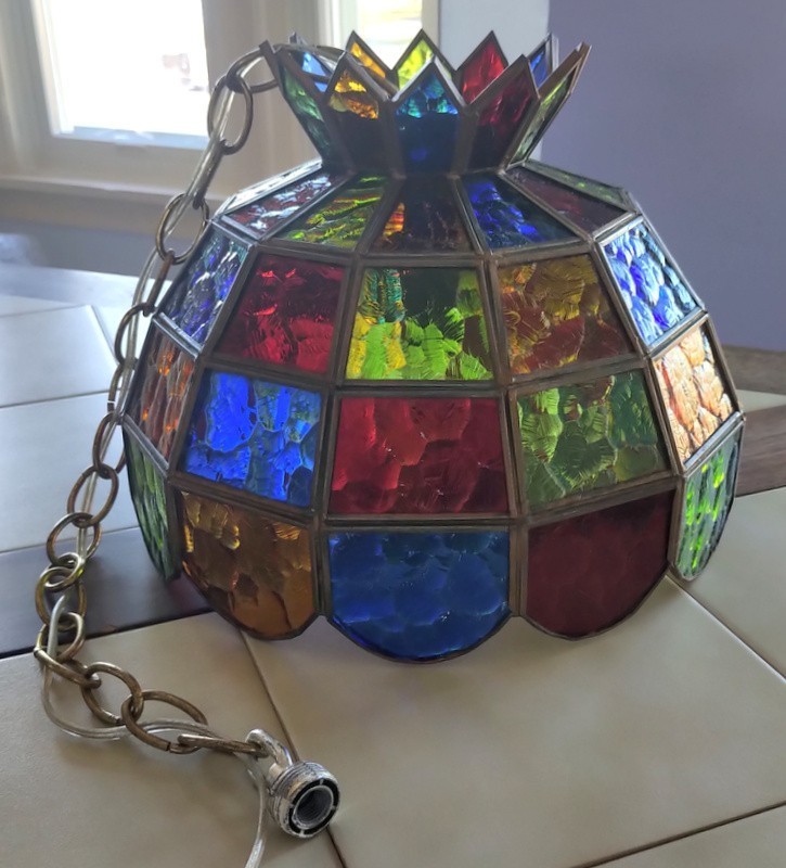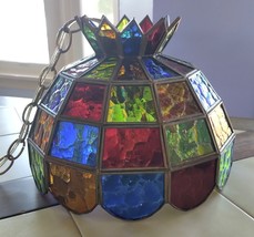 Vintage Multi-Color Stained Glass Ceiling Pendant Swag Light, 12" diameter