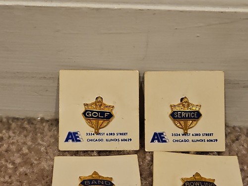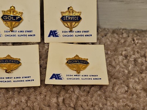 Set of 4 School Awards Pins: Band, Service, Bowling, Golf Pinbacks, Vintage