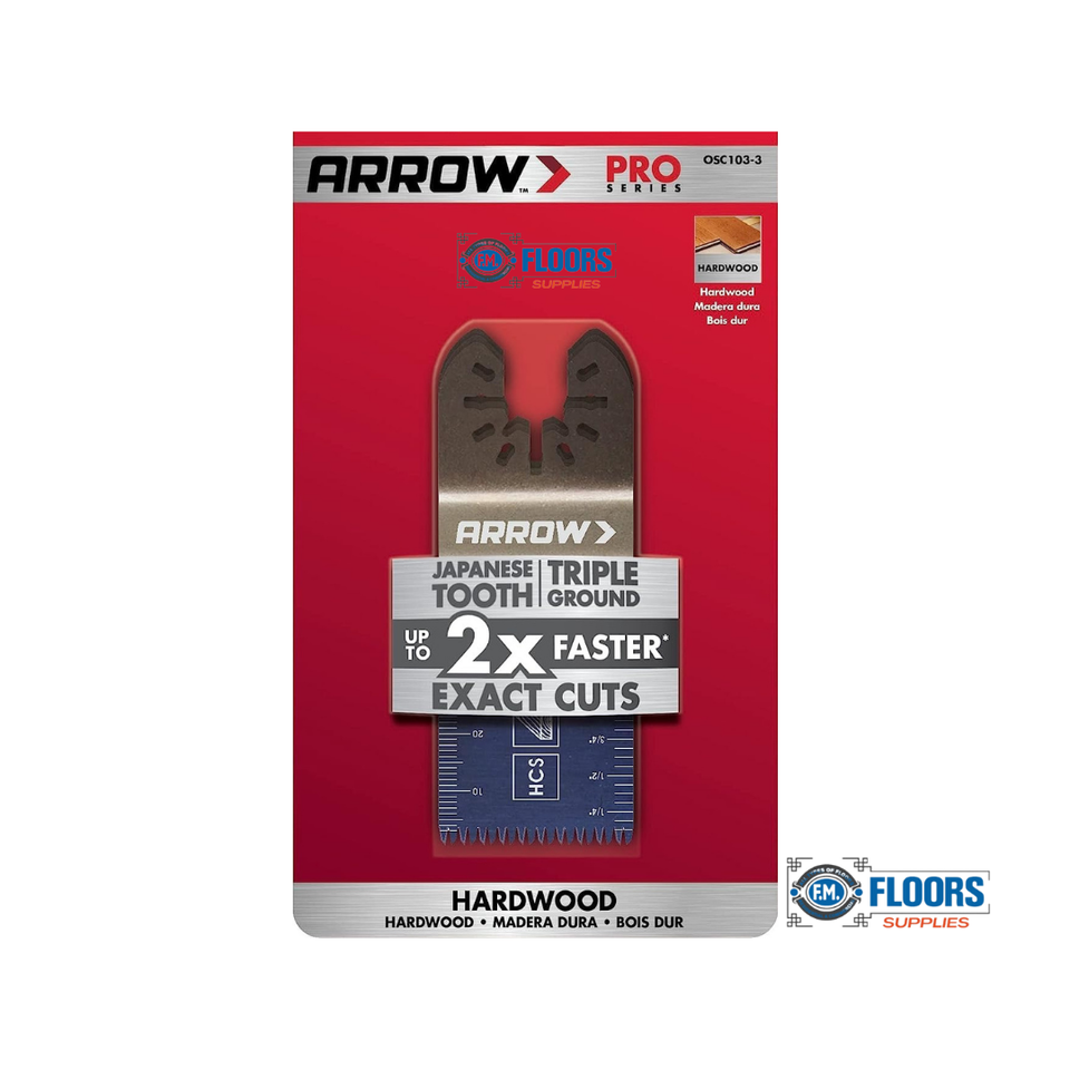 Our 1 ????? Japanese Tooth Hardwood Blade is made from triple-ground high-carbon steel featuring Japanese teeth that provide two times faster cuts compared to standard Arrow bi-metal blades. The universal fit makes it compatible with popular oscillating tools such as Dremel, Milwaukee, DeWalt, and more. Some popular projects include trim, flooring, and dowel cuts. (OSC103-3) IDEAL FOR: Hardwood, wood, PVC, drywall