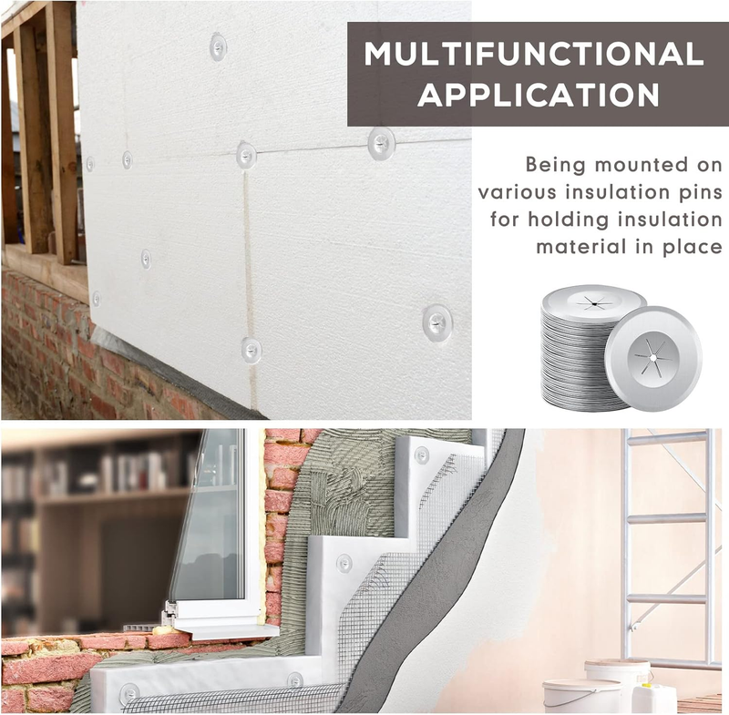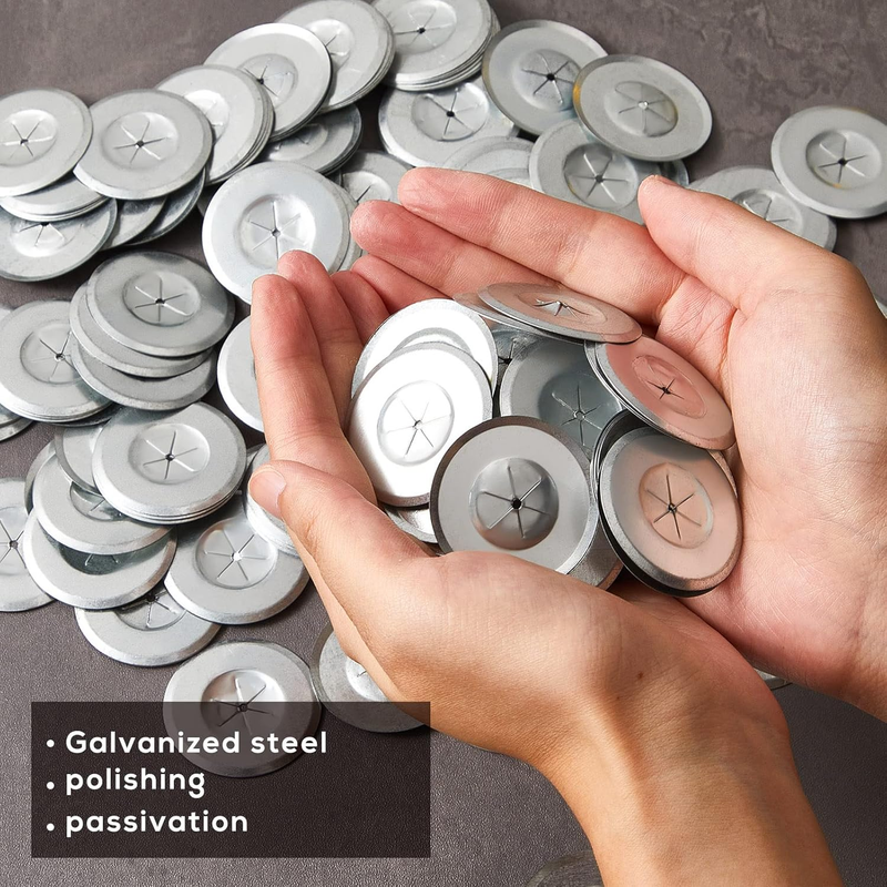 1.5 Inch Perforated Insulation Pins Self Locking Washers Flat Washer round Galvanized Steel Plaster Washers for Wall and Ceiling (200 Pieces)