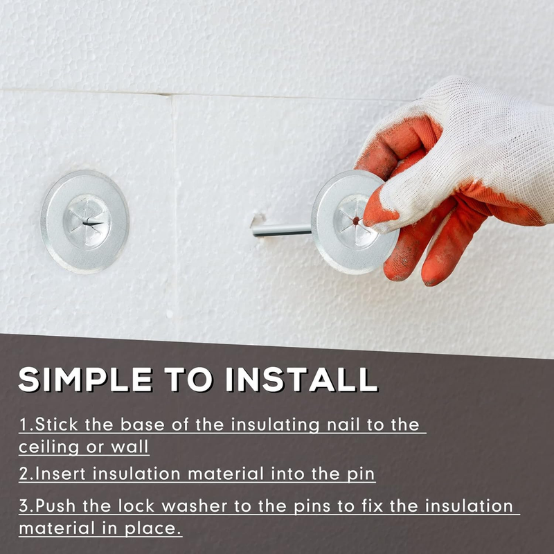 Easy to Install: stick/screw/nail the bottom of the insulation nails to the ceiling or wall, then pierce the insulation board into the insulation nails, push the self locking washers to the insulation nails, it is recommended that you distribute the insulation nails evenly, it can be very good stable items
