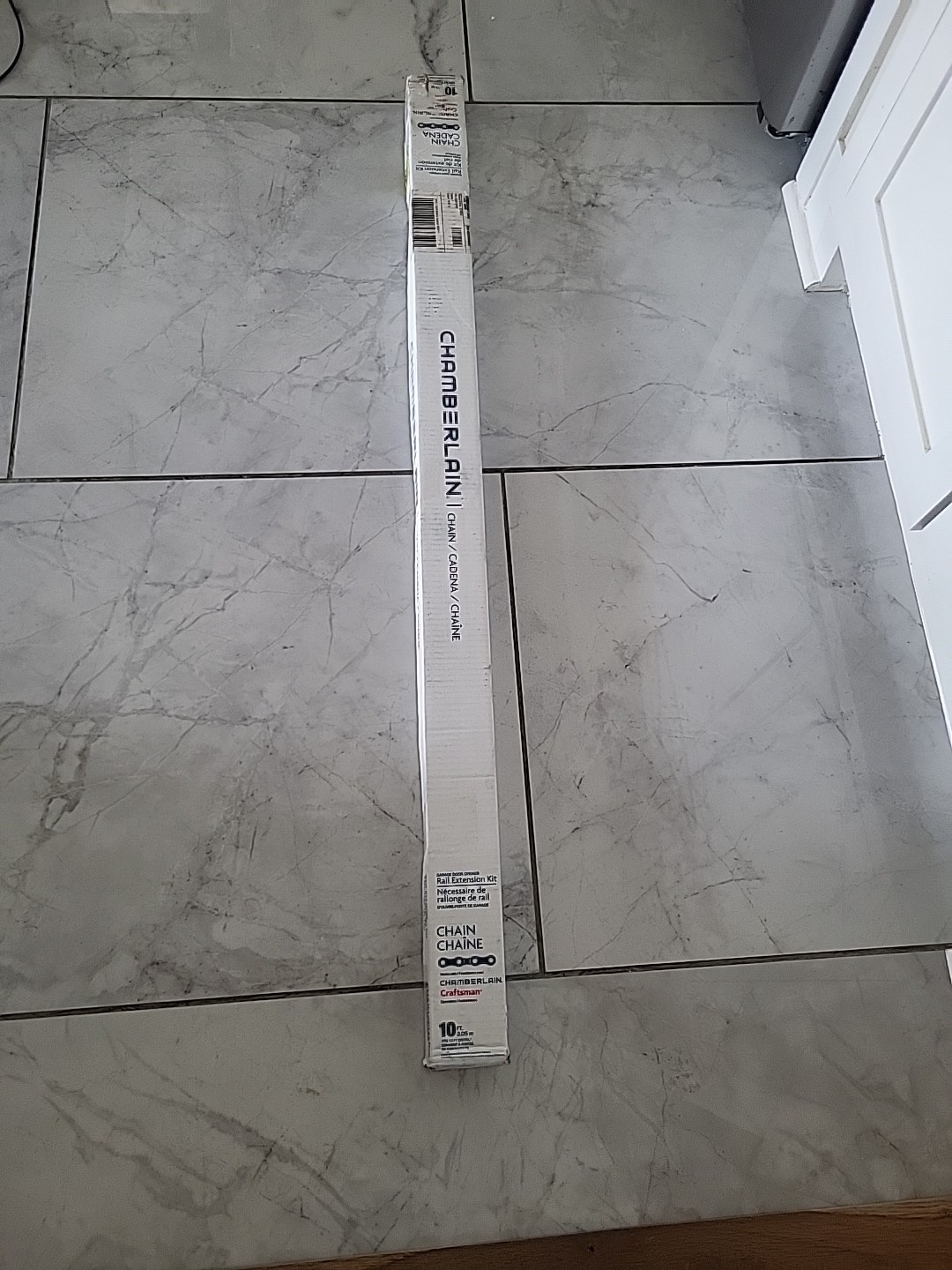 The Consumer Chain Extension Kit for 10 ft. High Garage Doors is required for reliable, everyday operation of Chamberlain chain drive models in 10 ft. garage door applications. Featuring a quick-install extension rail and replacement chain, the kit everything needed for quick and easy installation. Rail extension, replacement chain, all necessary hardware and an instruction manual for easy setup.